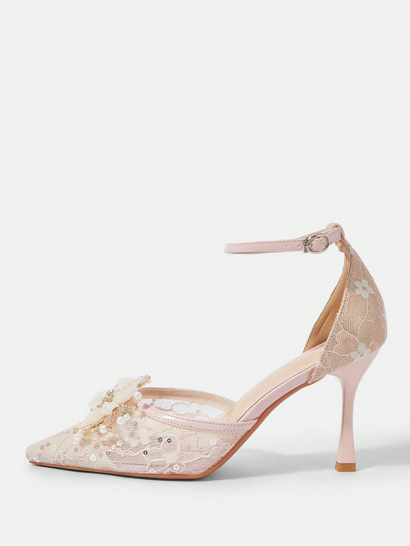 Elegance Unleashed: Floral Lace Pointed Toe Stiletto Heels