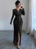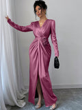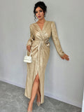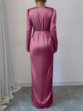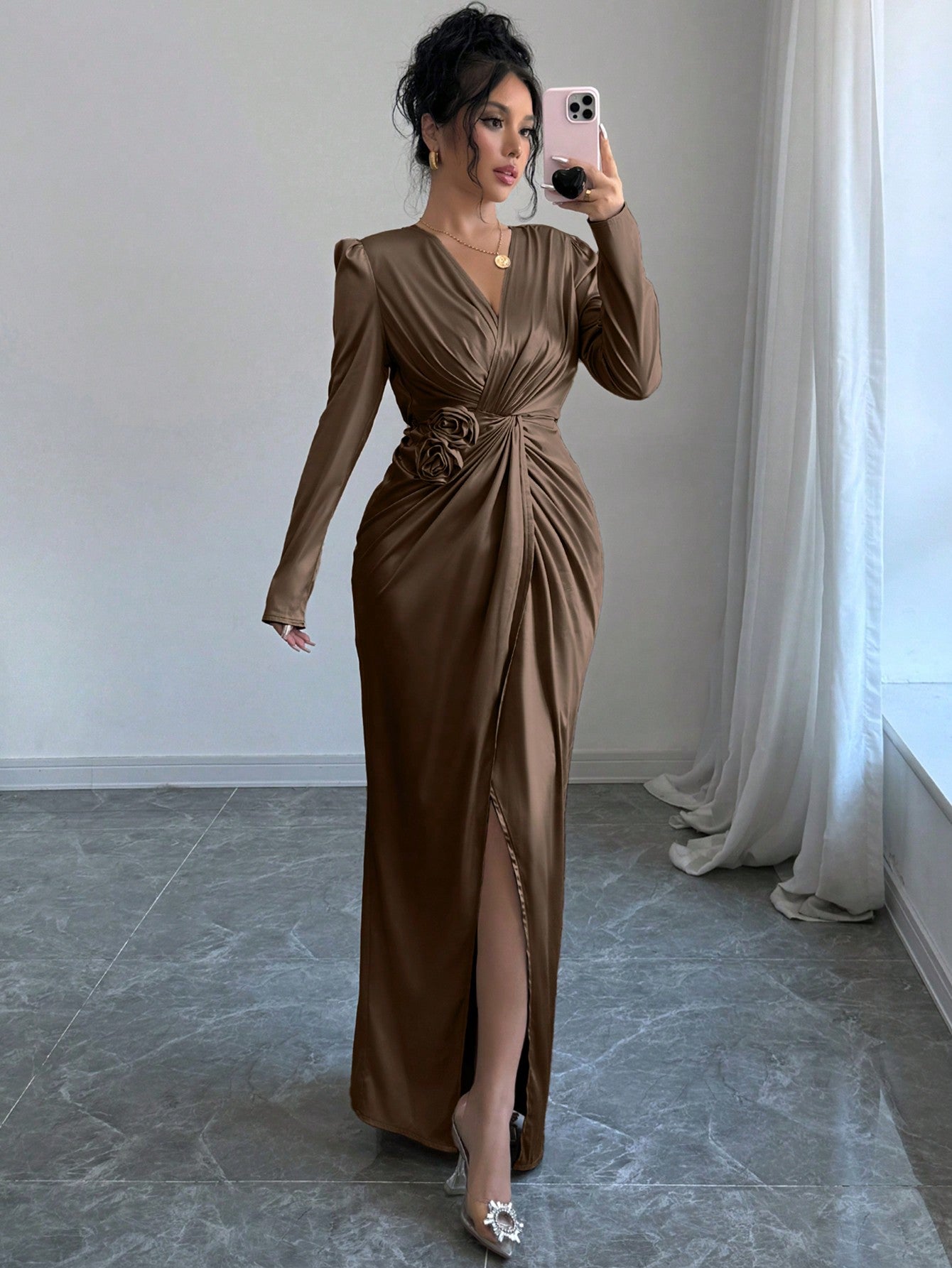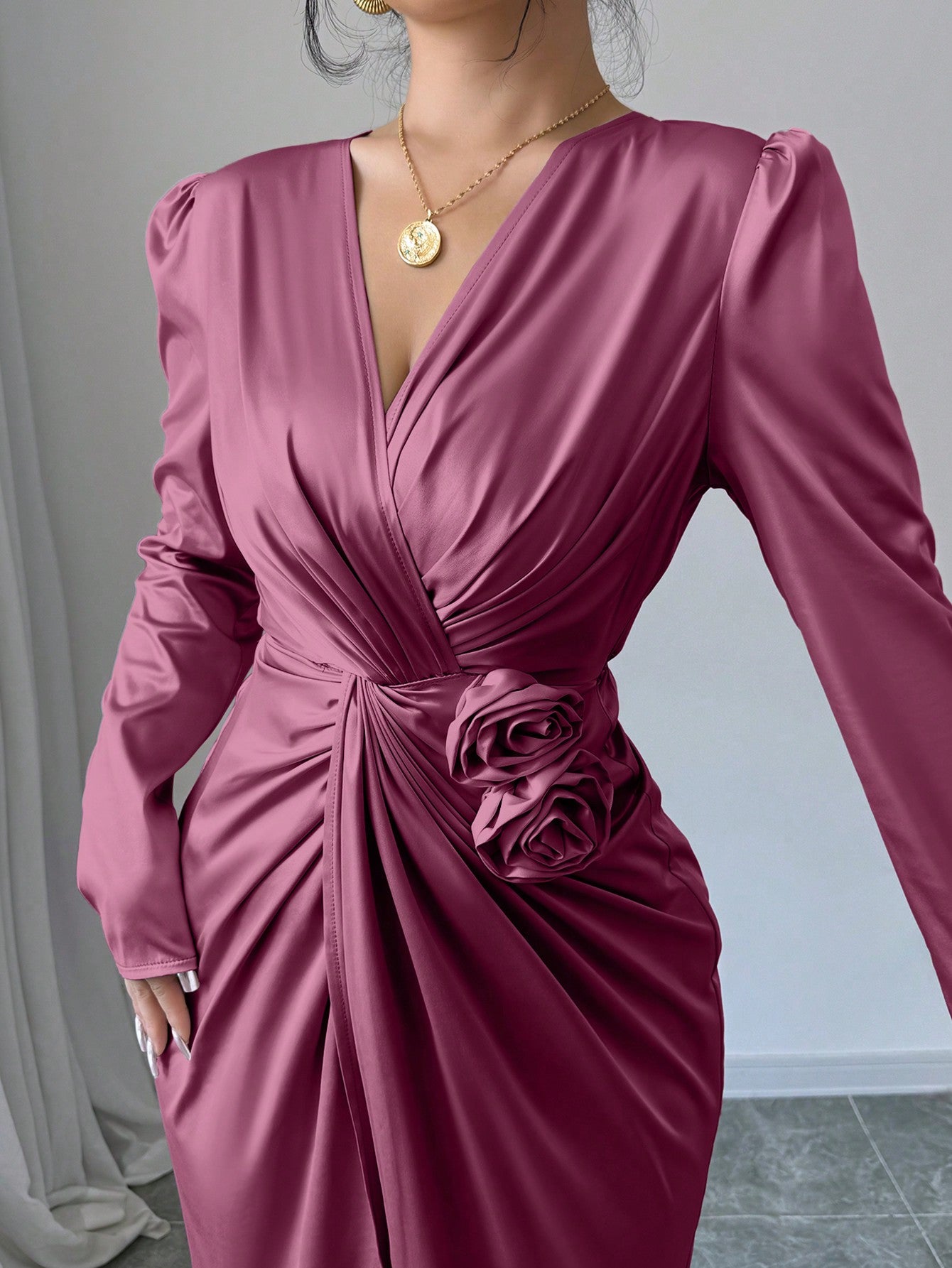 Elegant 3D Floral Wrap Dress with Twist Knot Detail for Autumn