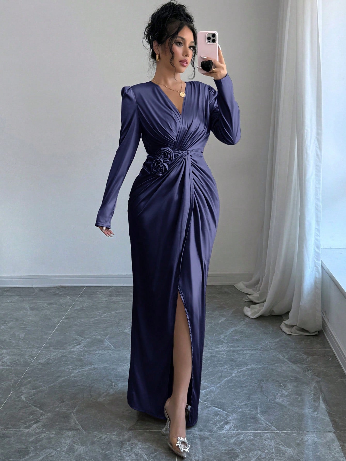This elegant 3D floral wrap dress for autumn is a statement piece with its unique twist knot detail. Made from high-quality materials, this dress offers both comfort and style. The 3D floral design adds a touch of elegance while the twist knot detail highlights your waistline. Perfect for any autumn occasion.