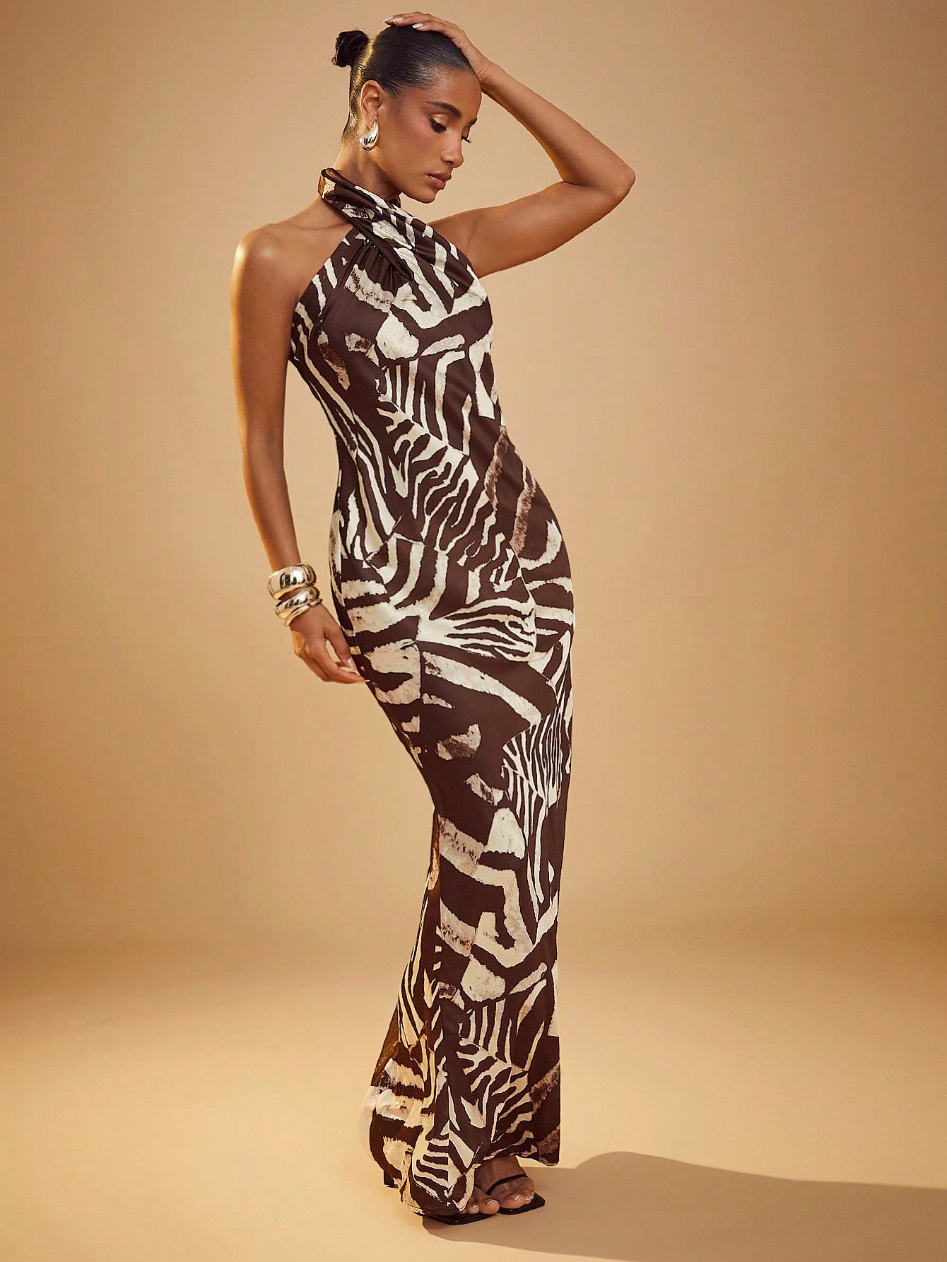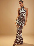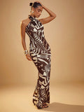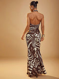 Elegant Animal Print Cross Halter Maxi Dress - Effortless Chic for Every Occasion