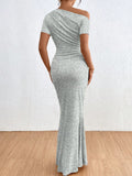 Elegant Asymmetric Mermaid Dress - Solid Color Summer Style