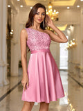 Elegant Asymmetrical Neck Embroidered Beaded Tulle Cocktail Dress
