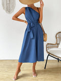 Elegant Asymmetrical Neck Ruched Dress for Effortless Holiday Style