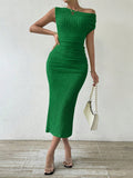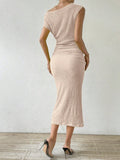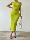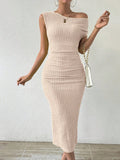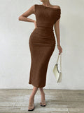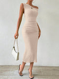 Elegant Asymmetrical Neckline Solid Color Dress - Perfect for Any Occasion