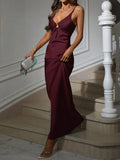 Elegant Aveloria Gathered V-Neck Maxi Dress – Perfect for Parties and Formal Occasions