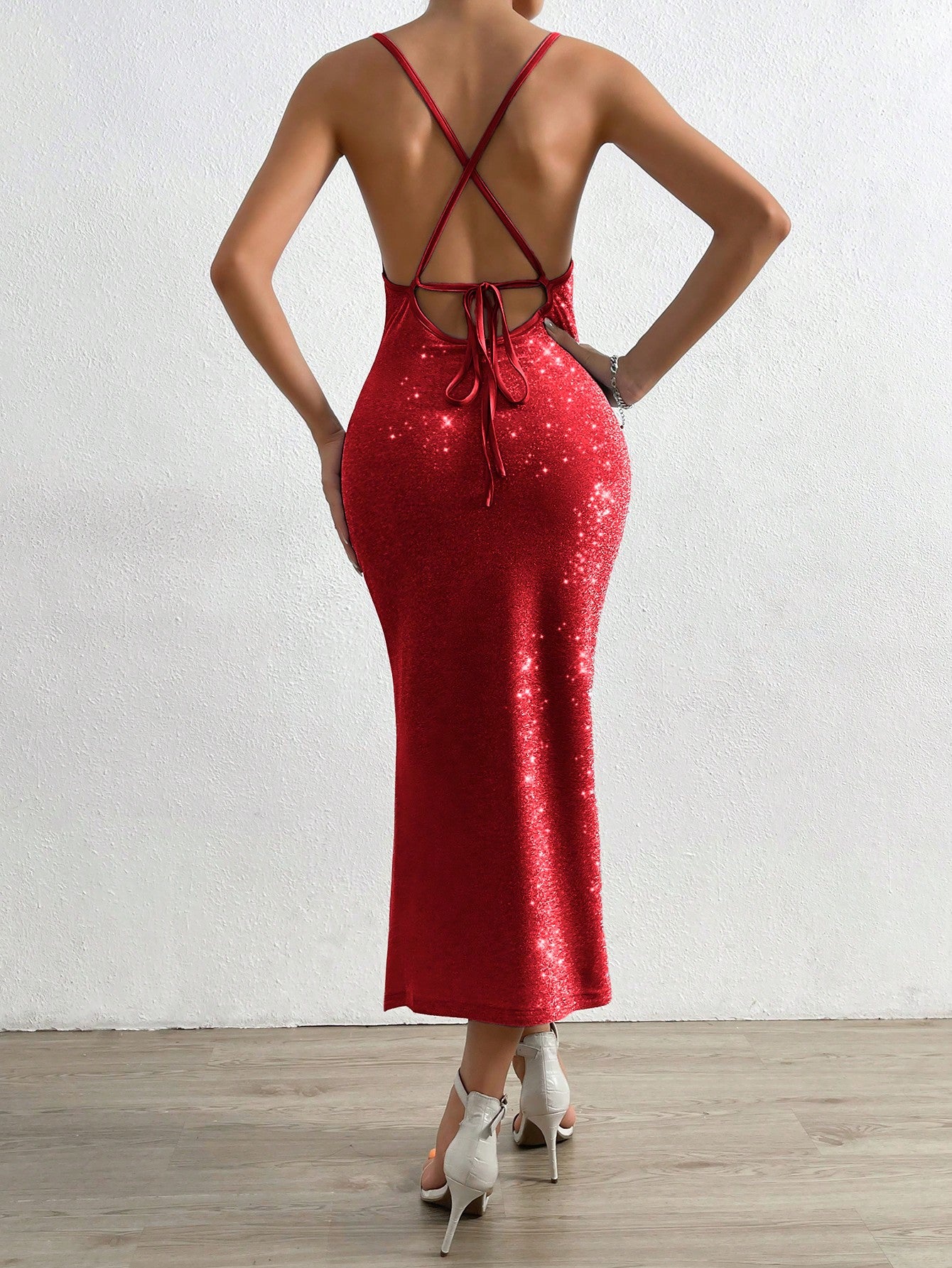 Details : Backless, Criss Cross, Draped, Split Thigh