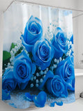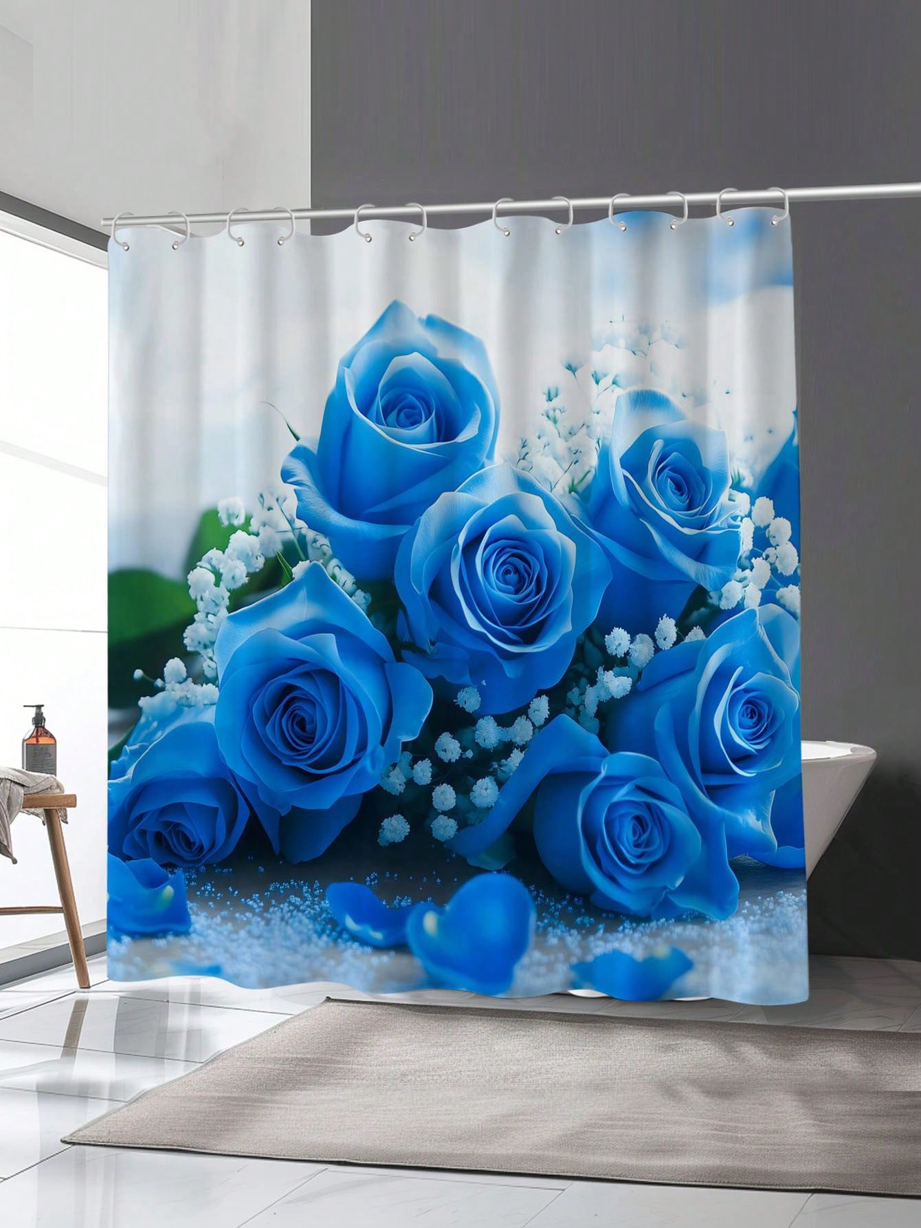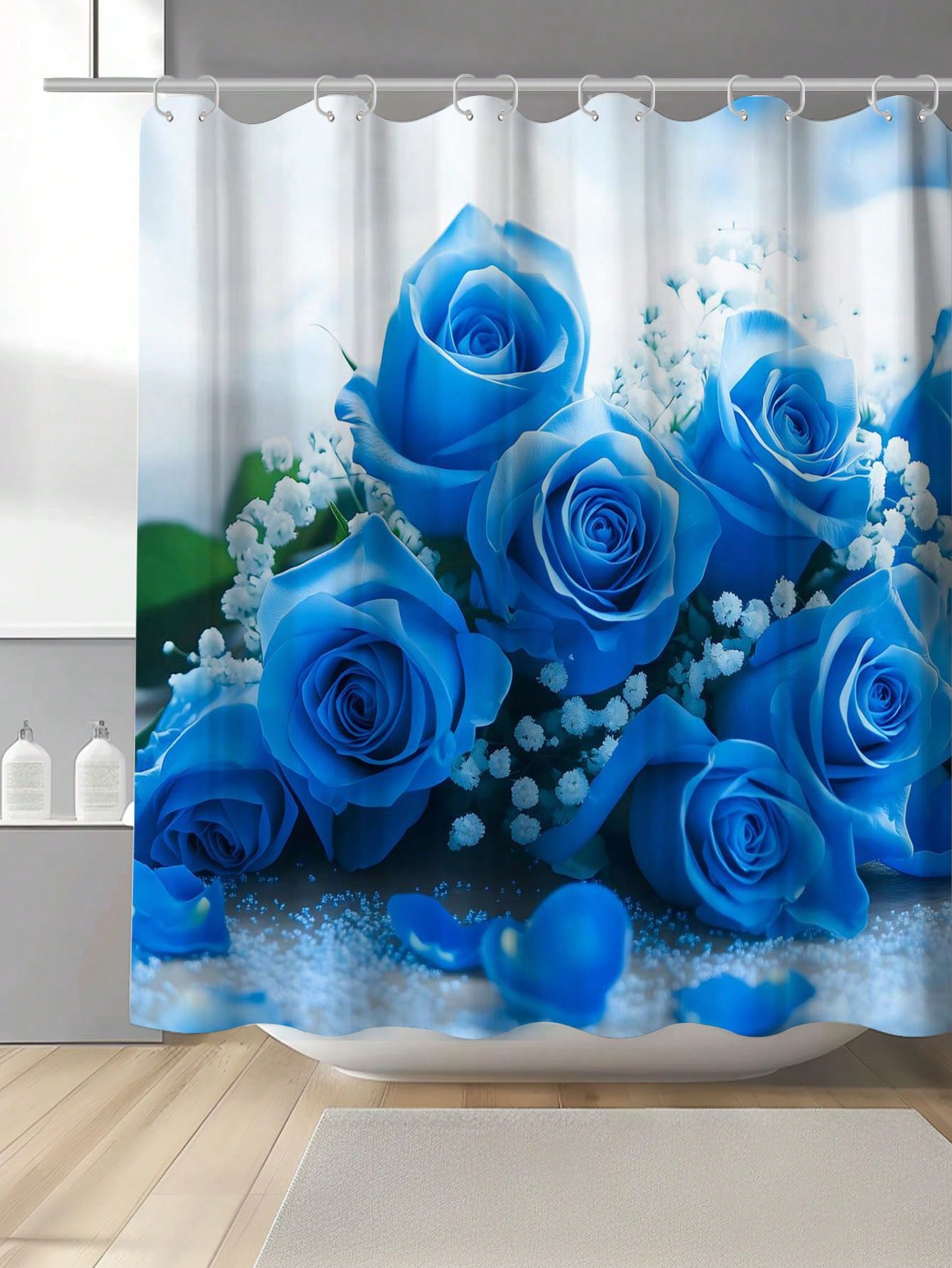 Elegant Blue Rose Floral Shower Curtain – Mildew-Resistant, Waterproof & Stylish Bathroom Essential