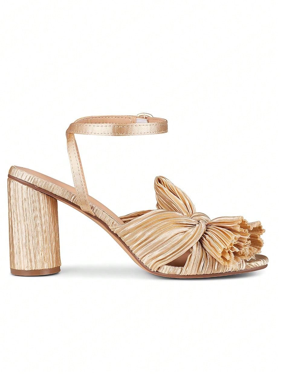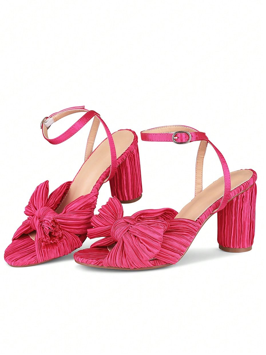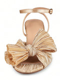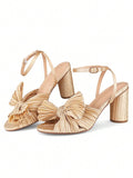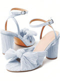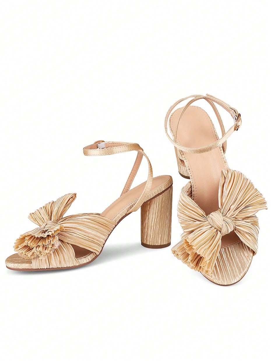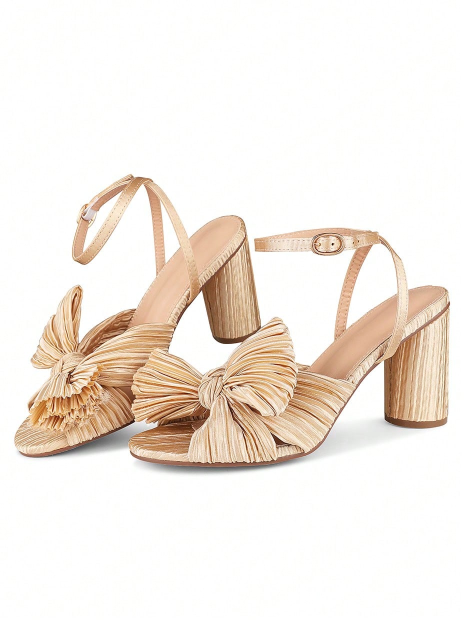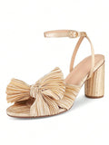 Elegant Bowknot Pleated Chunky High-Heeled Sandals - Perfect for Summer Weddings