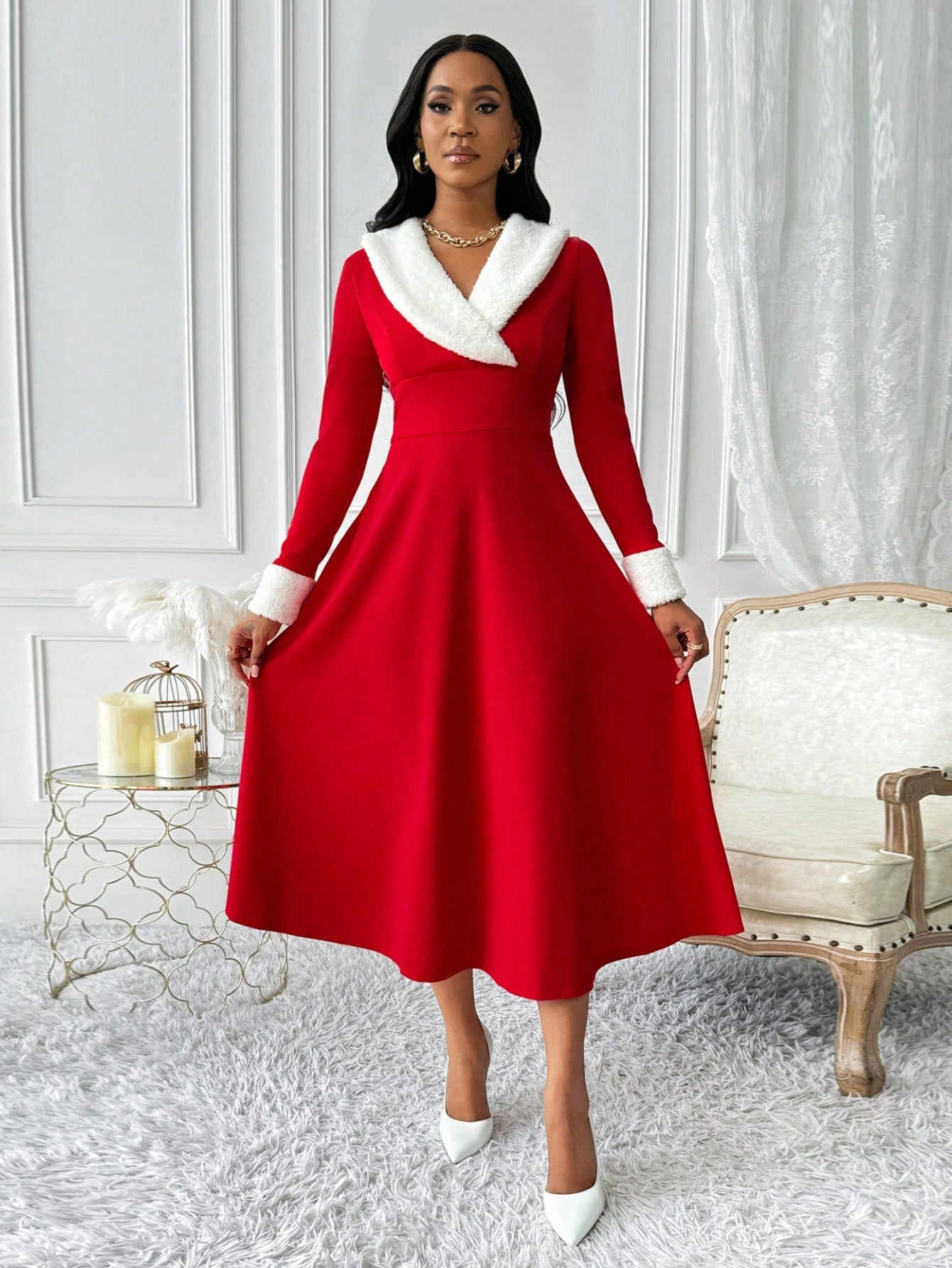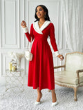 Elegant Christmas Long Sleeve Dress with Furry Trim – Perfect for Autumn & Winter Celebrations
