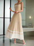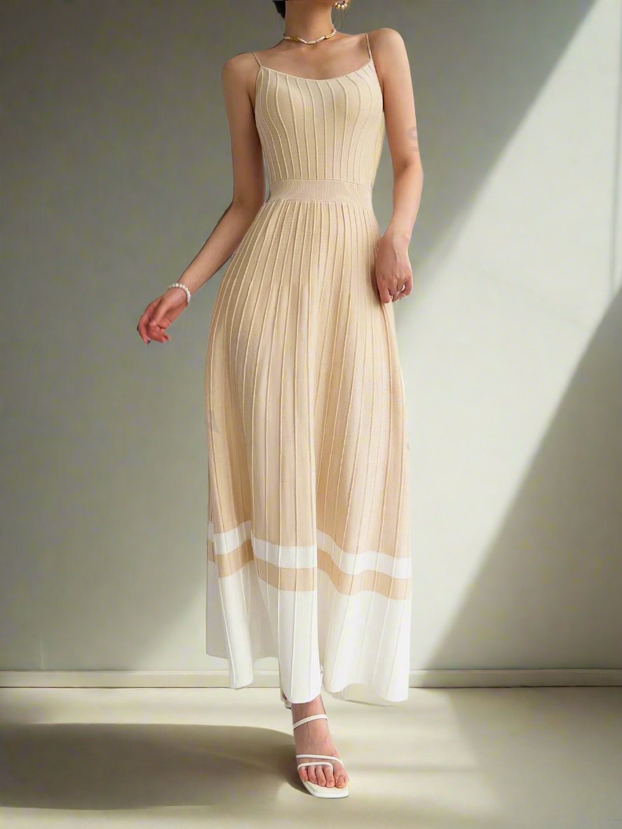Elegant Color Block Knitted Midi Dress - Perfect for Summer, Brunch & Back to School