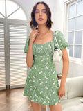 Elegant Daisy Floral Print Ruched Bust Dress – A Touch of Spring Style
