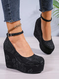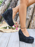 Elegant Embroidered Platform Wedge Sandals – Comfort Meets Charm for Bridesmaids