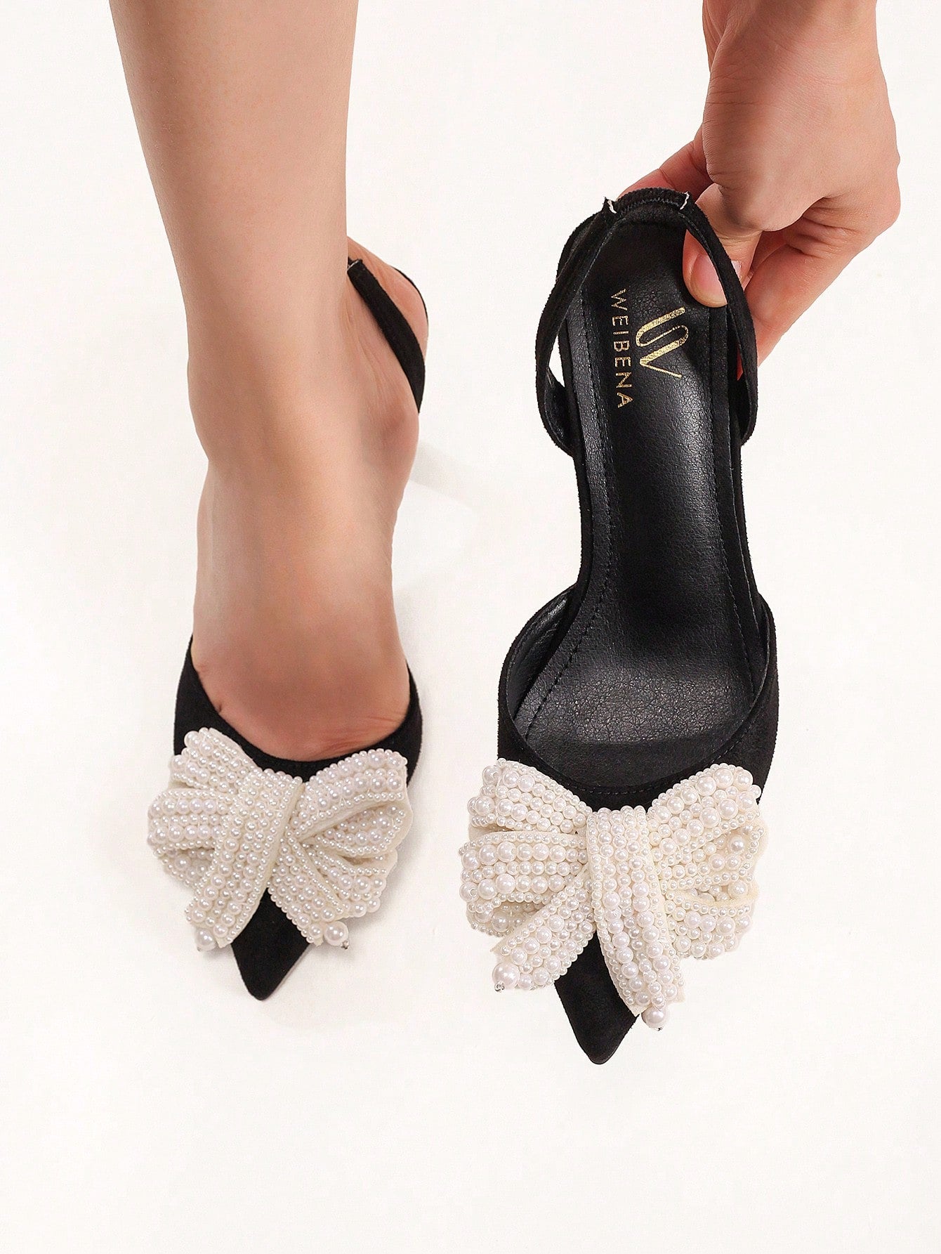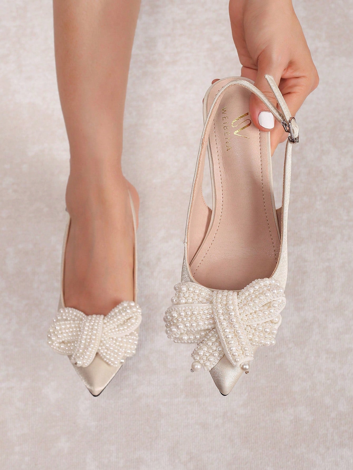 Elegant Faux Pearl Bowknot Stiletto Heels: Chic Bridal & Party Footwear