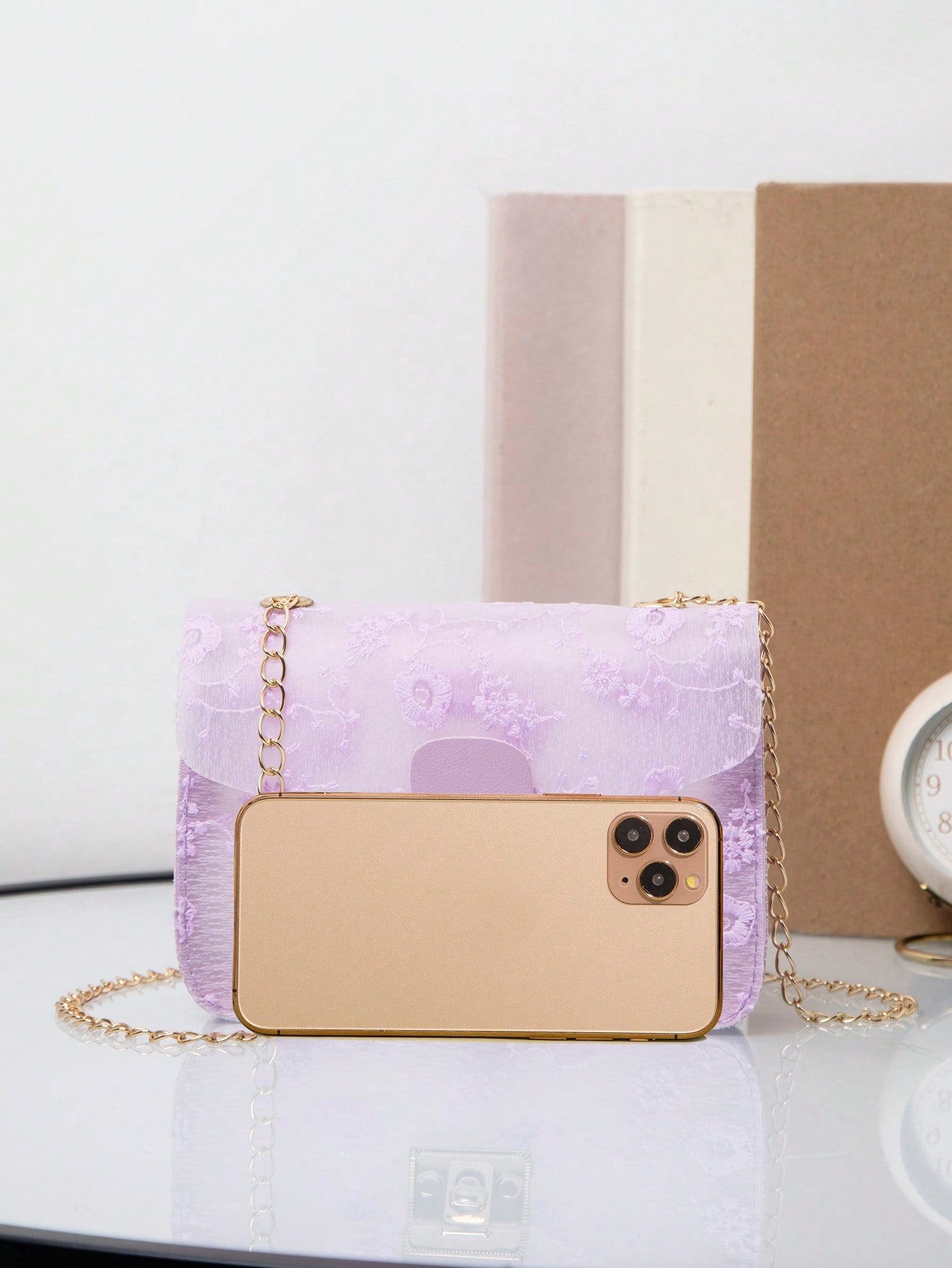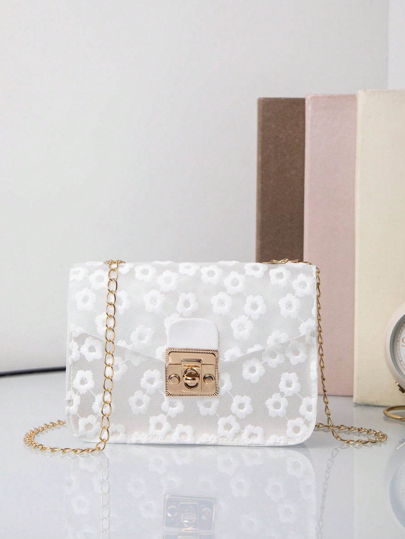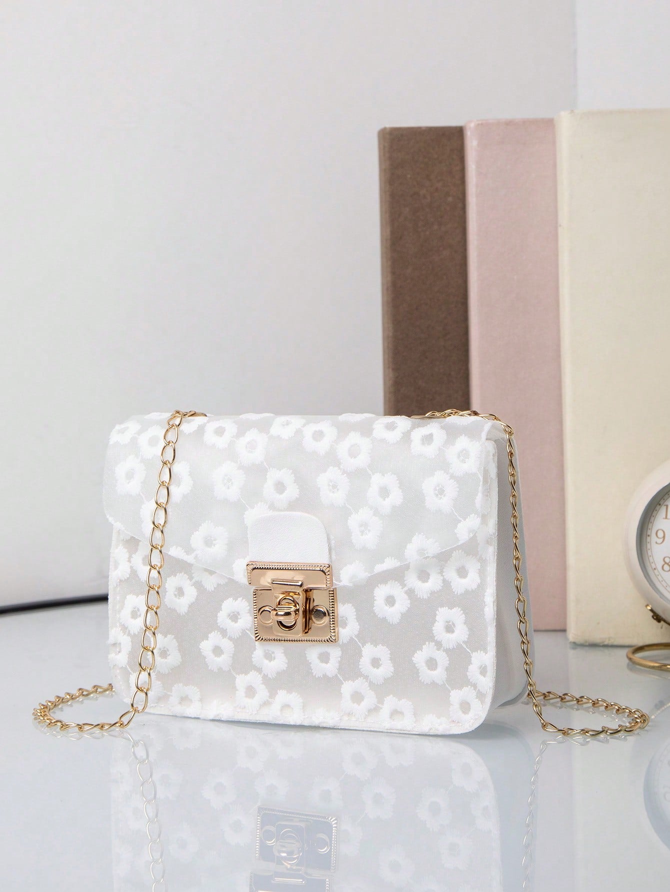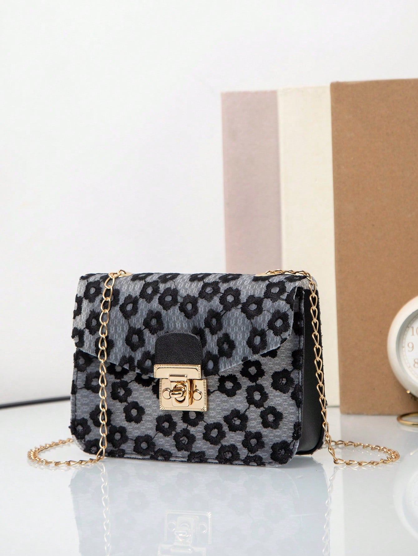 Elegant Floral Chain Bag: Stylish Lock Buckle Design for Versatile Wear