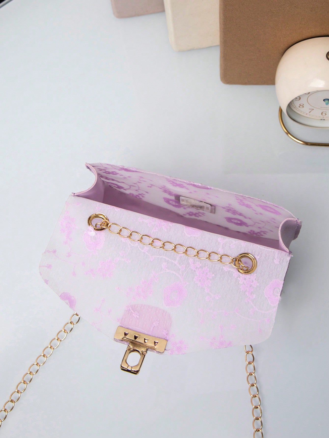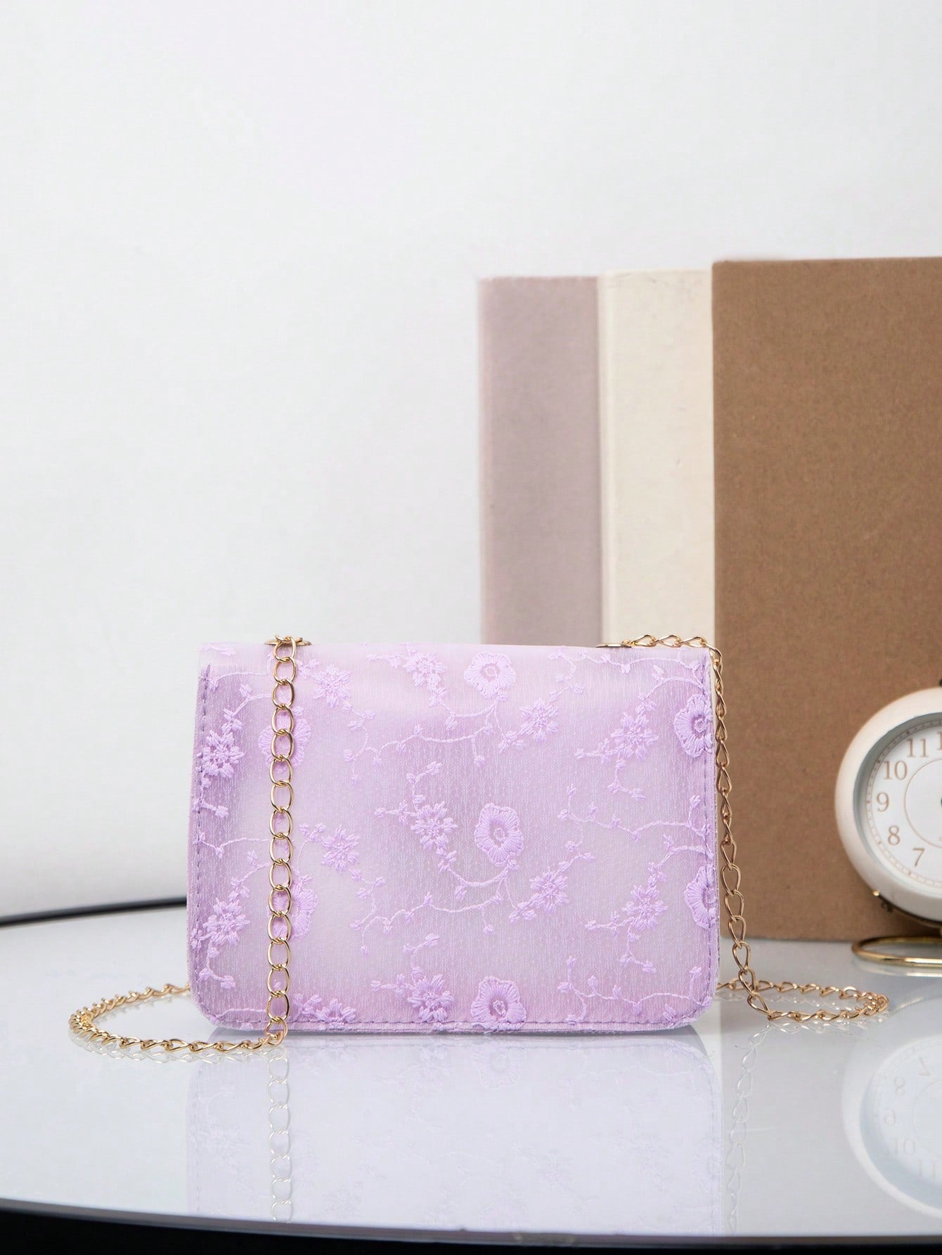 This Elegant Floral Chain Bag boasts a stylish lock buckle design, perfect for versatile wear. Inspired by European fashion, this crossbody bag is a must-have for spring and summer. Elevate any outfit with its chic and elegant floral print.