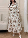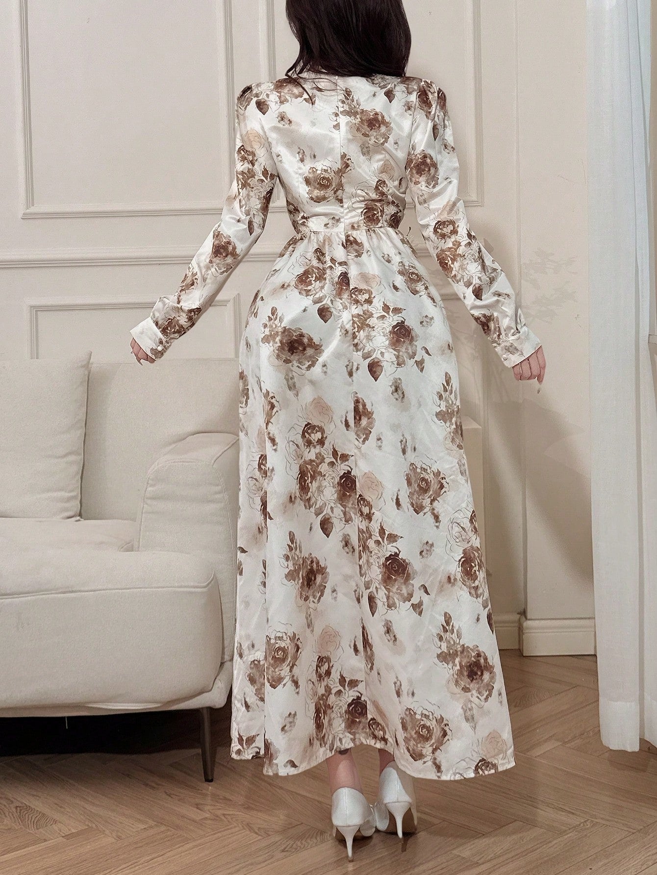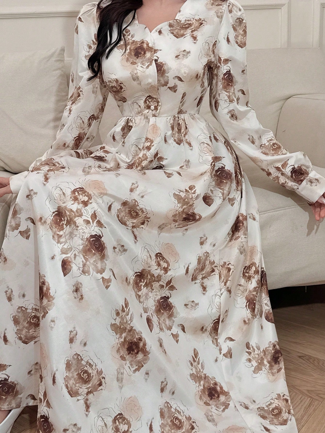 Elegant Floral Print Long Dress for Women – Perfect for Autumn & Winter Wear