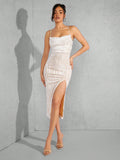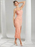 Elegant Floral Slip Dress with Ruffle Hem and Side Slit