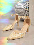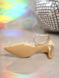 Step up your party look with our elegant gold high heels! The hollow pearl ankle strap adds a touch of sophistication, and the peep-toe design keeps you comfortably stylish all night long. Perfect for chic party looks, these heels will elevate any outfit.