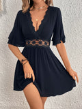 Elegant Guipure Lace Plunge Dress: A Chic Statement for Every Occasion