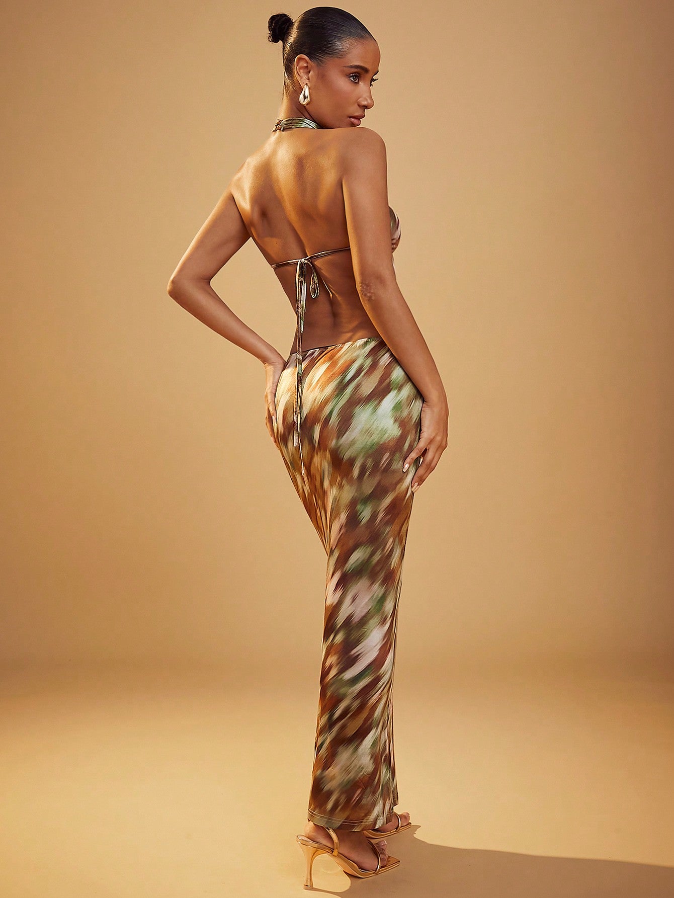 Elegant Haute Hollow-Out Halter Mermaid Maxi Dress