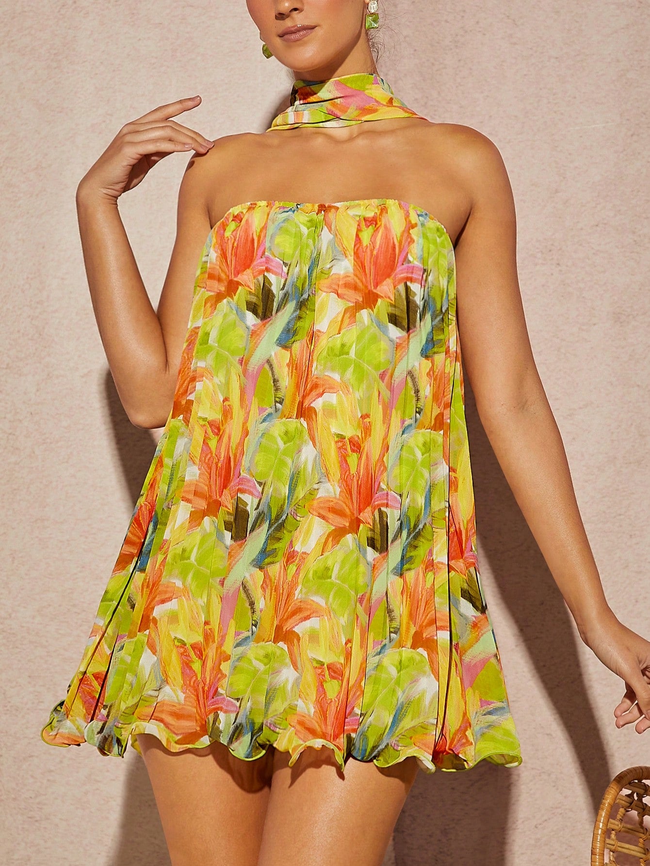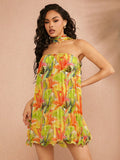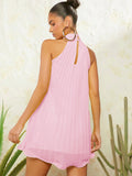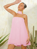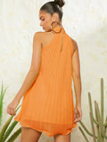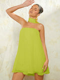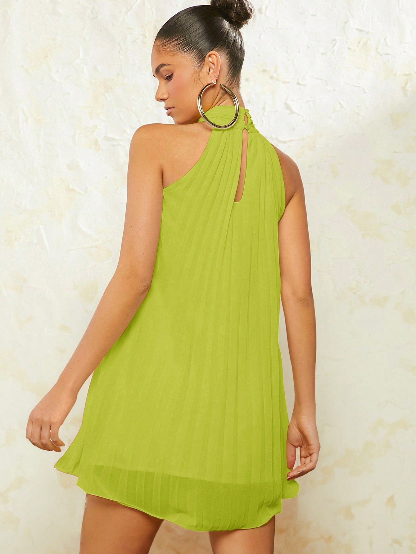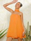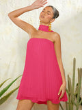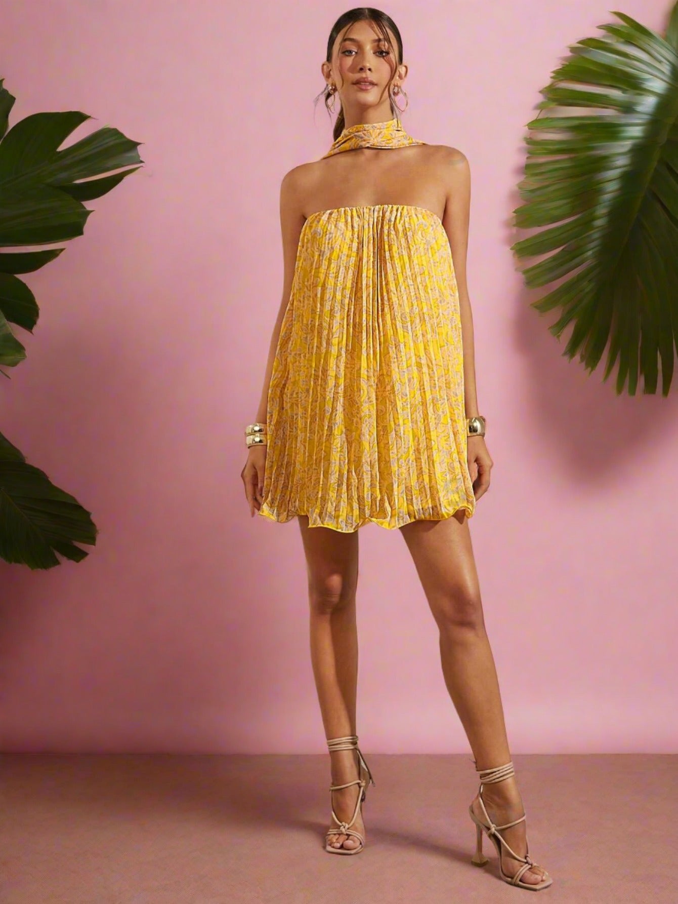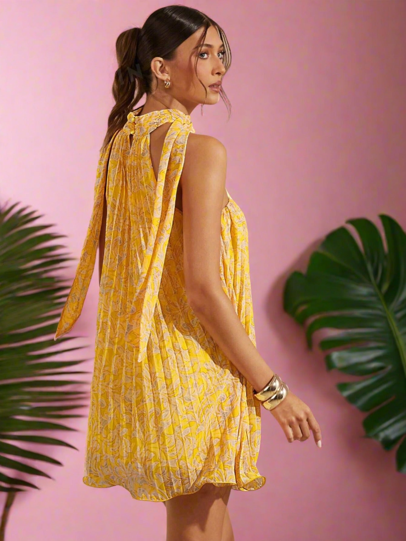 Elegant Haute Neck Tie Pleated Dress - Perfect for Any Occasion