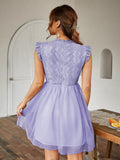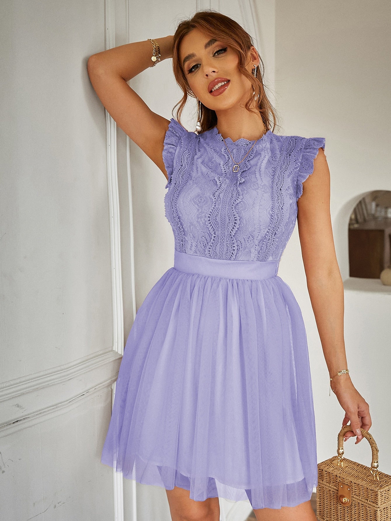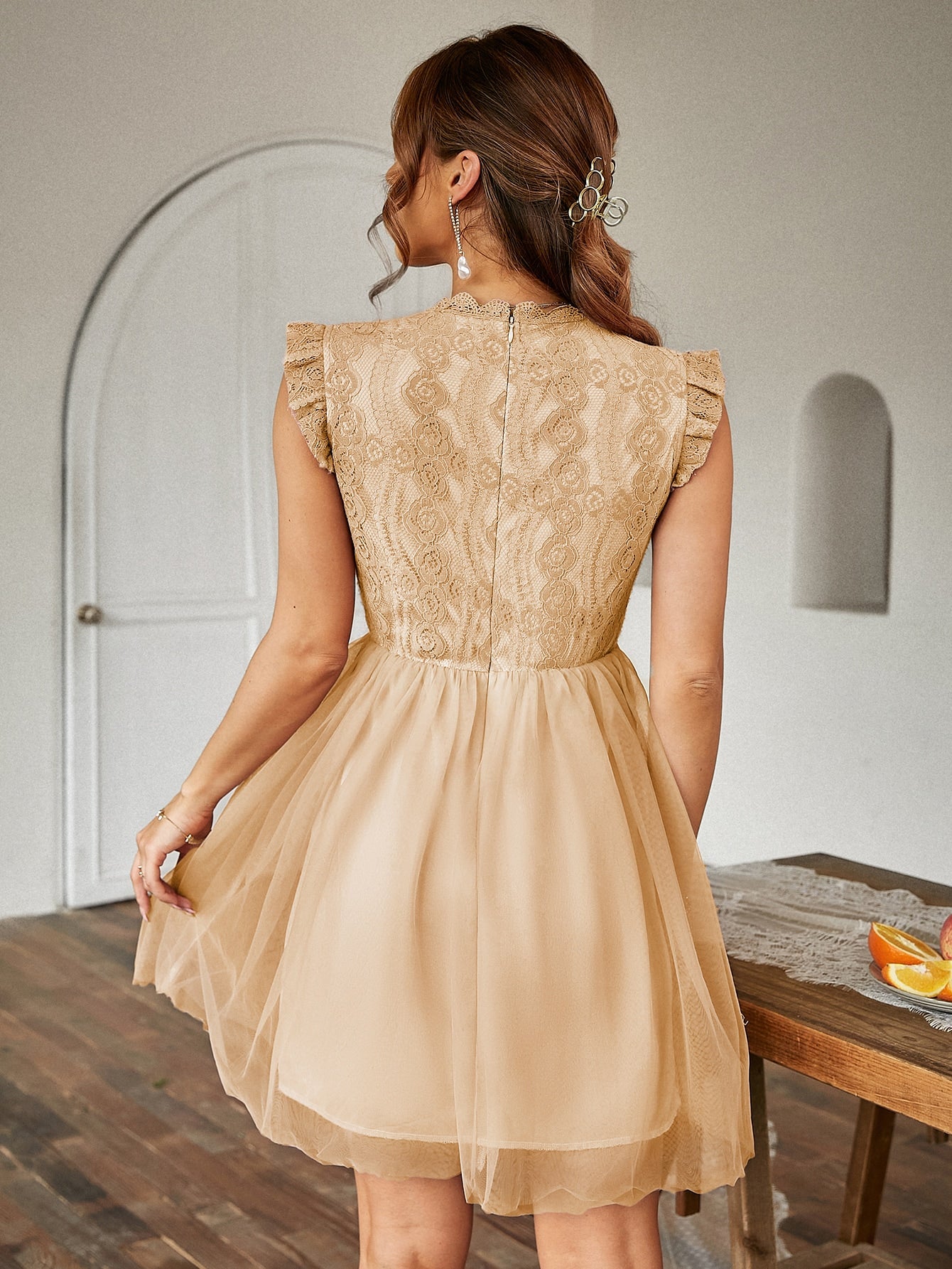 Elegant Lace Ruffle Mesh Dress with Scallop Trim