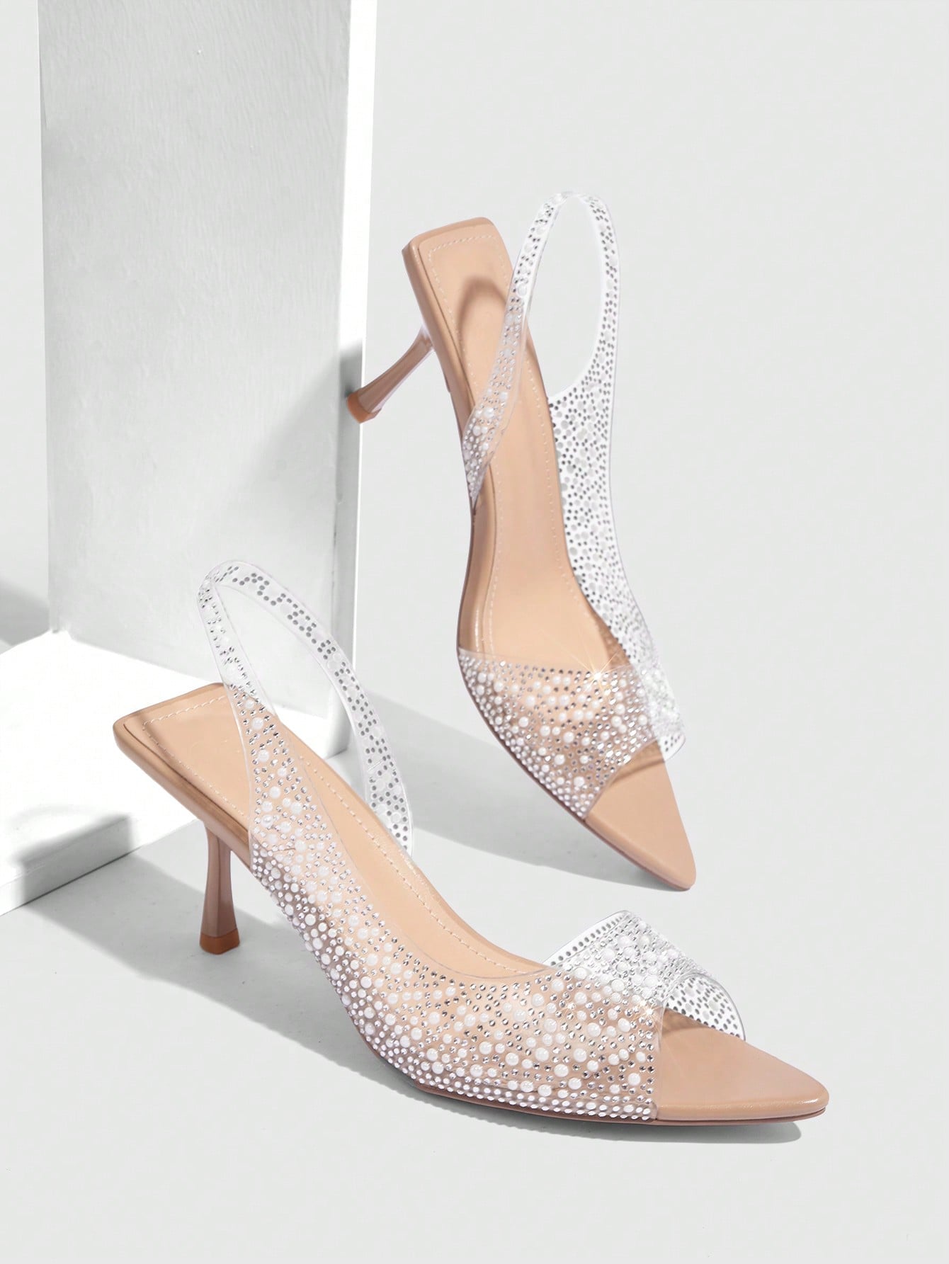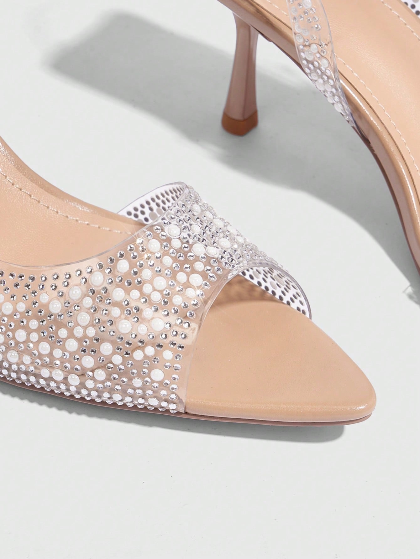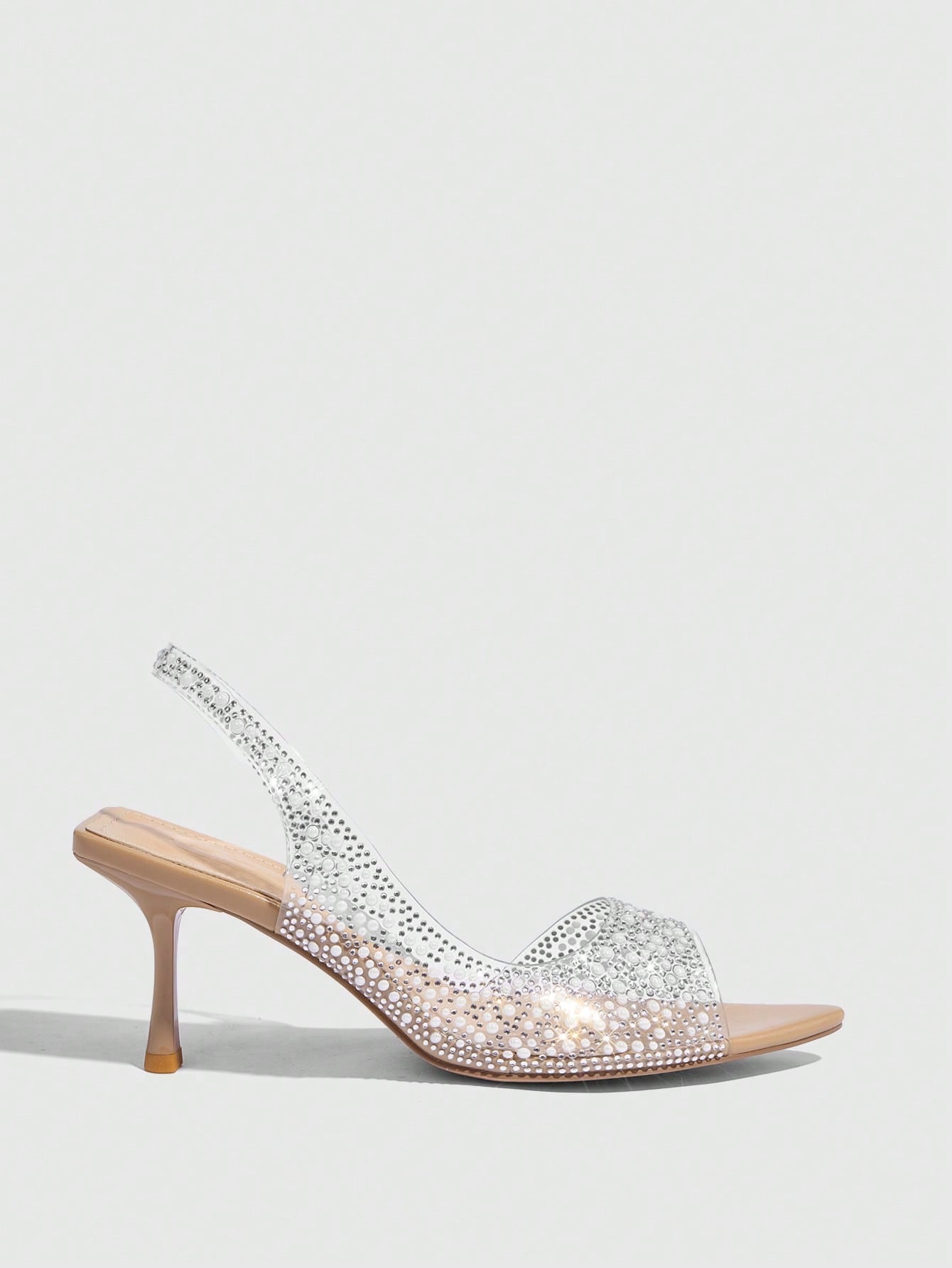 Elegant Nude Rhinestone PVC Peep-Toe Kitten Heel Sandals for Every Occasion