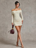 Elegant Off-Shoulder Bodycon Mini Dress - Perfect for Cocktails, Dates, and Parties