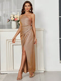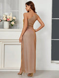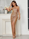 Elegant One-Shoulder Shimmering Burgundy Party Dress with Side Split