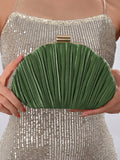 Elegant Pleated Satin Evening Clutch with Chain Strap - Perfect for Prom and Formal Events