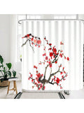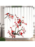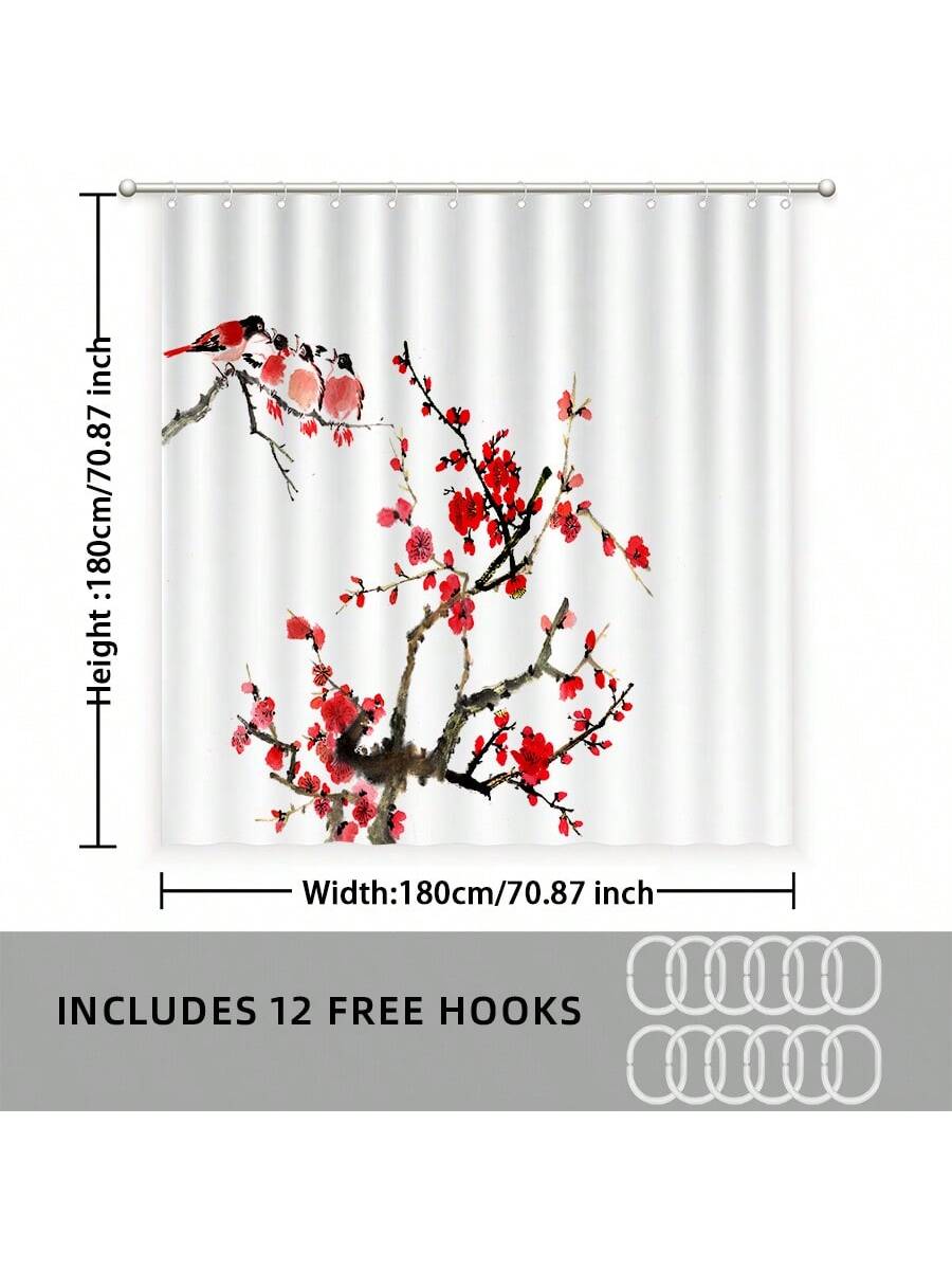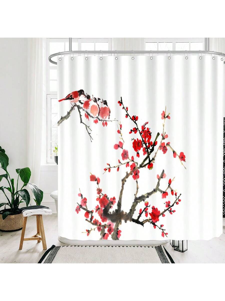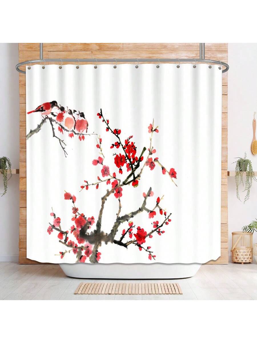 Elegant Plum Blossom Waterproof Shower Curtain Set - Modern Minimalist Design with Hooks