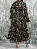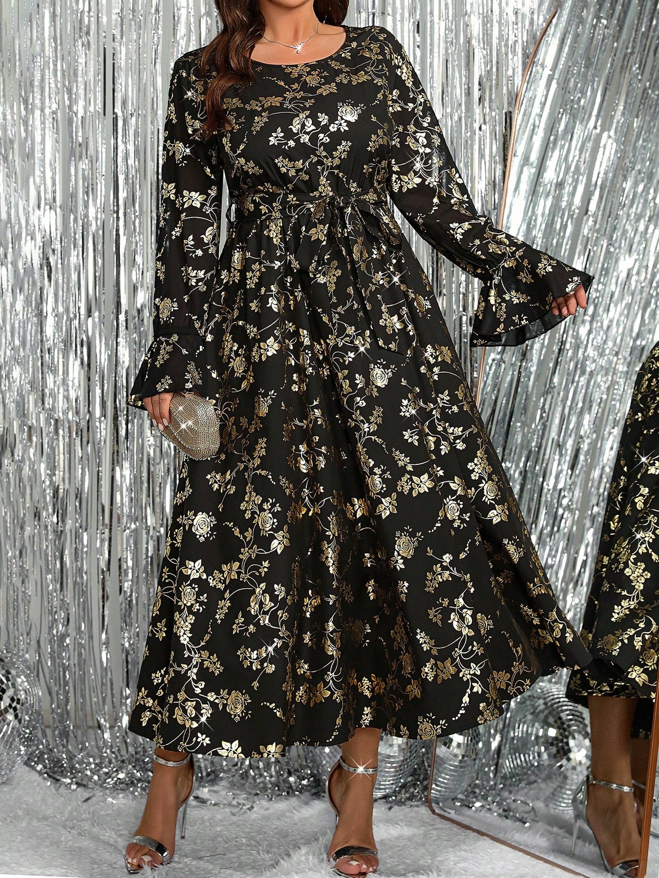 Elegant Plus Size Gold Heat Transfer Dress for Romantic Christmas Parties