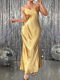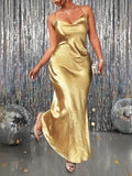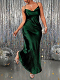 Elegant Plus Size Shiny Satin Maxi Dress with Crossover Design for Holiday Parties