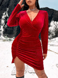 Elegant Plus Size V-Neck Velvet Maxi Dress with Sequin Detail for Glamorous Nights