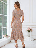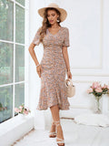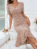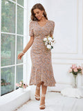 Elegant Red Velvet V-Neck Ruffle Hem Long Dress for Women