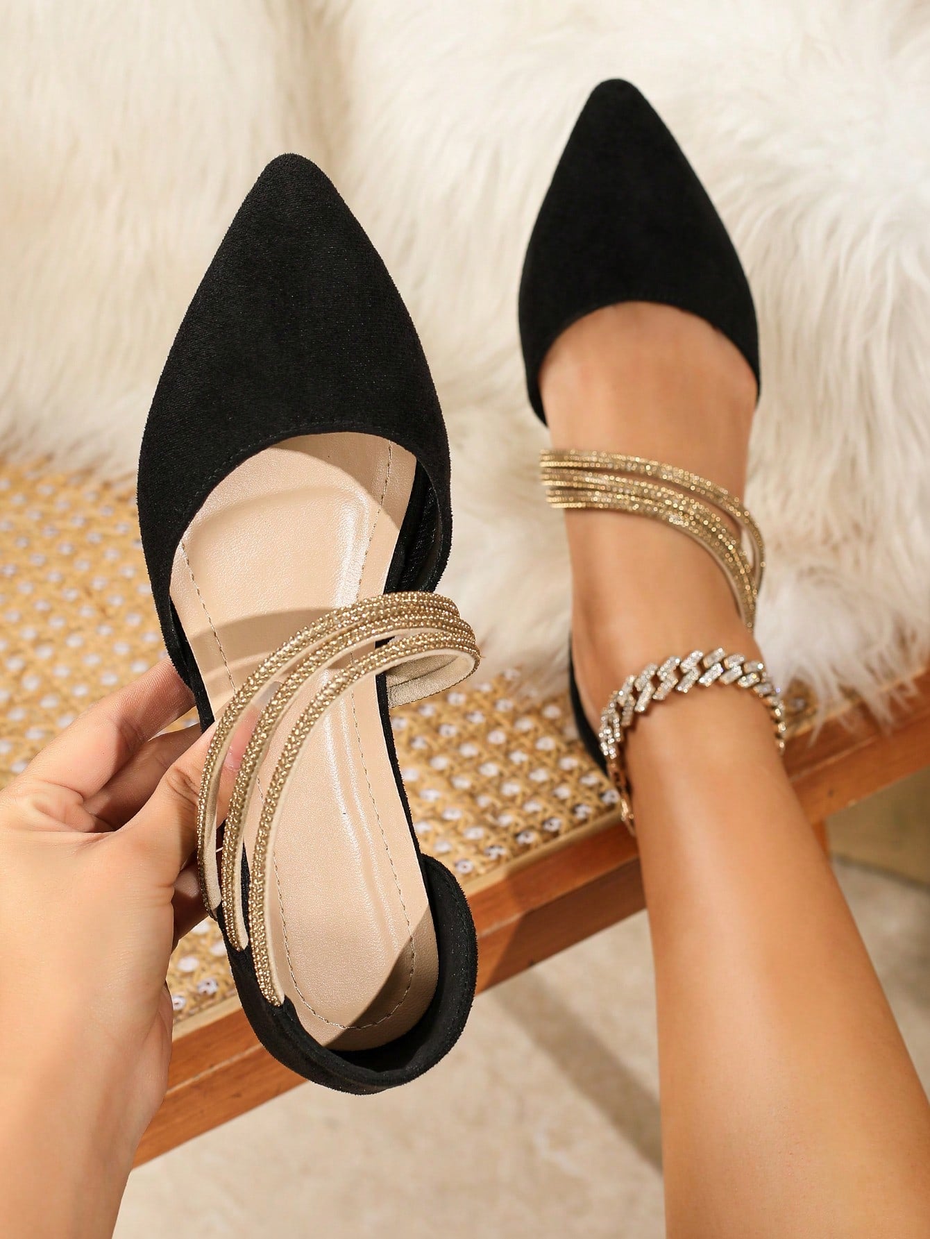 Elegant Rhinestone-Embellished Hollow-Out Pointed Flats – Perfect for Weddings, Parties, and Summer Elegance