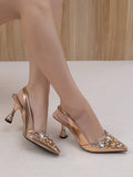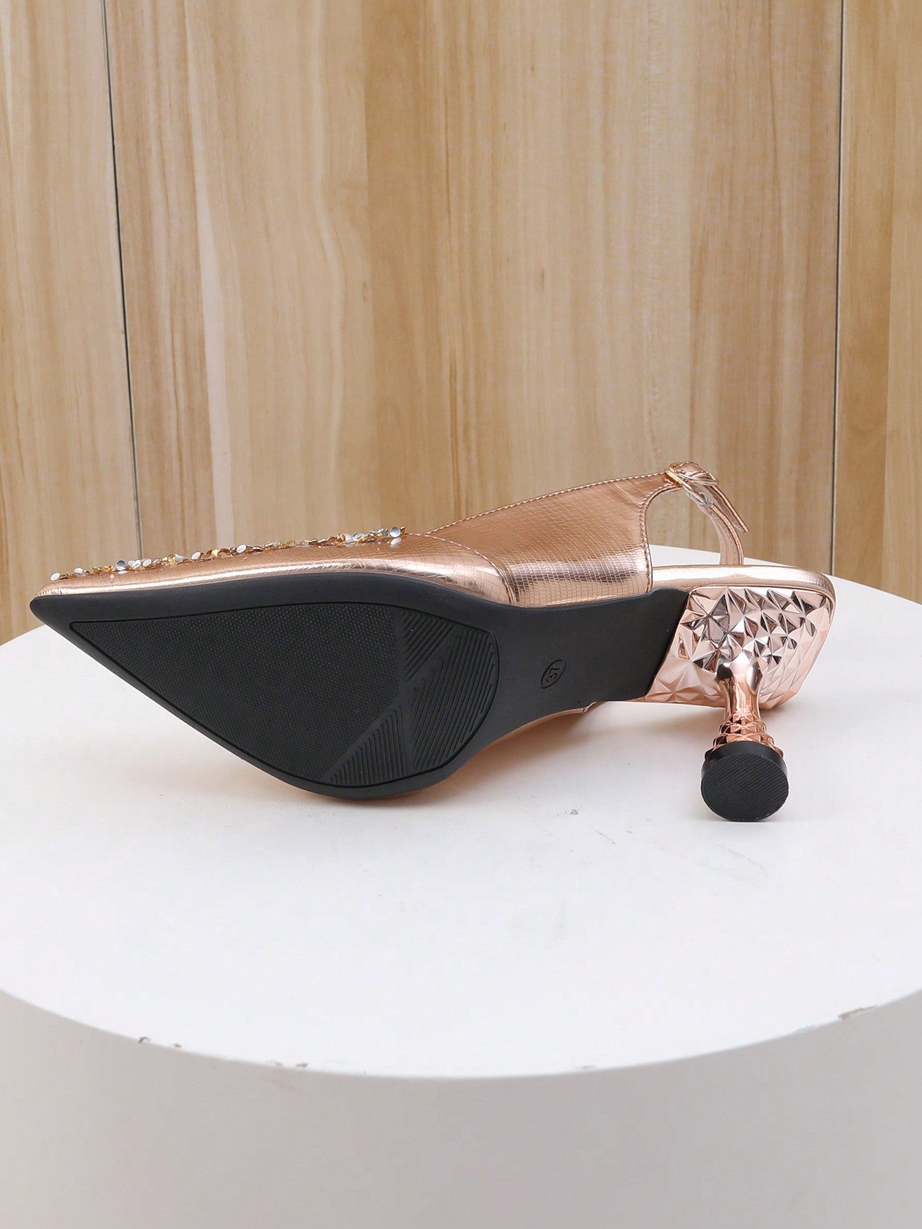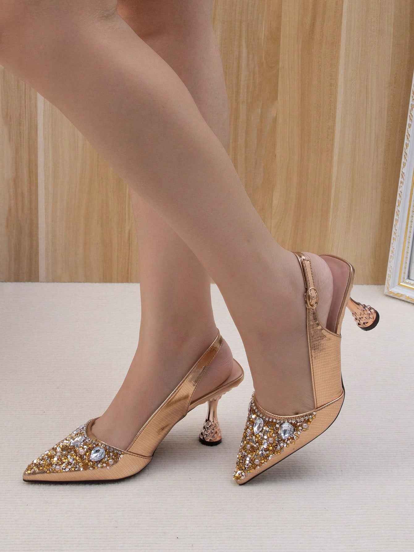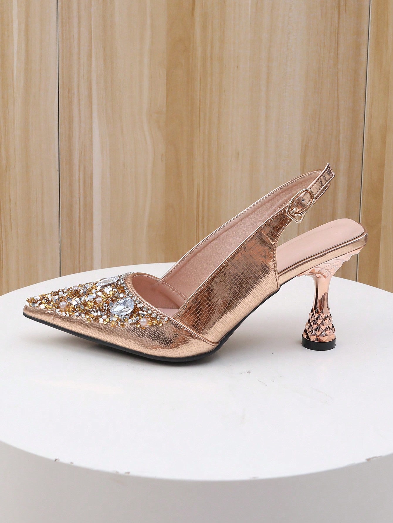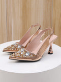 Elegant Rhinestone-Embellished Pointed Toe High Heel Pumps with Ankle Strap
