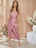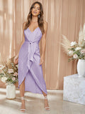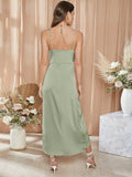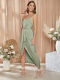 Elegant Satin Cami Bridesmaid Dress with Tie Front and Wrap Hem