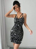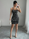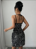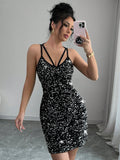 Elegant Sequin Patchwork Spaghetti Strap Hollow-Out Dress