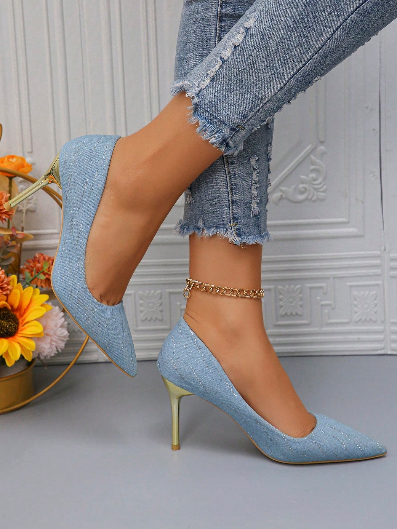 Elegant Shiny Gold Pointed High Heels - Versatile & Comfortable for Work and Everyday Style