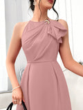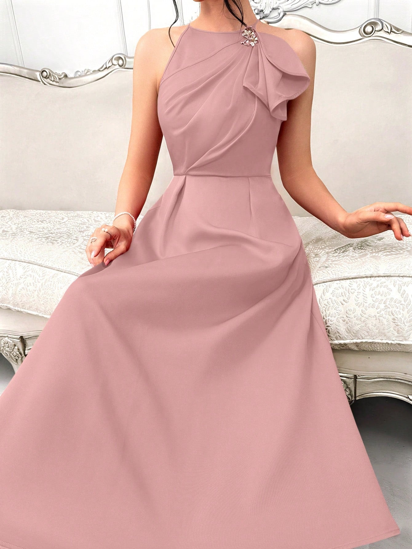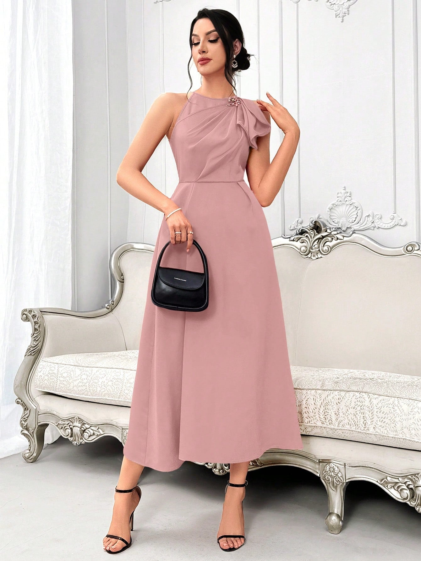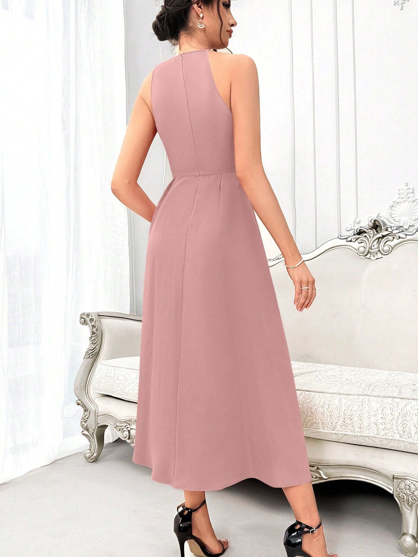 Elegant Sleeveless Summer Maxi Dress with Ruffle Hem and Pleated Design
