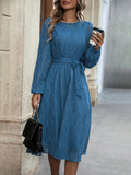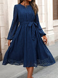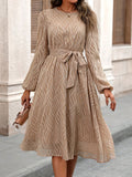 Elegant Solid Lantern Sleeve Belted Dress - Timeless Style for Any Occasion