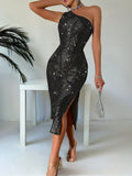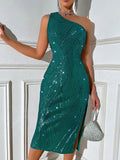 Elegant Sparkly One-Shoulder High Slit Dress for Women