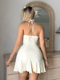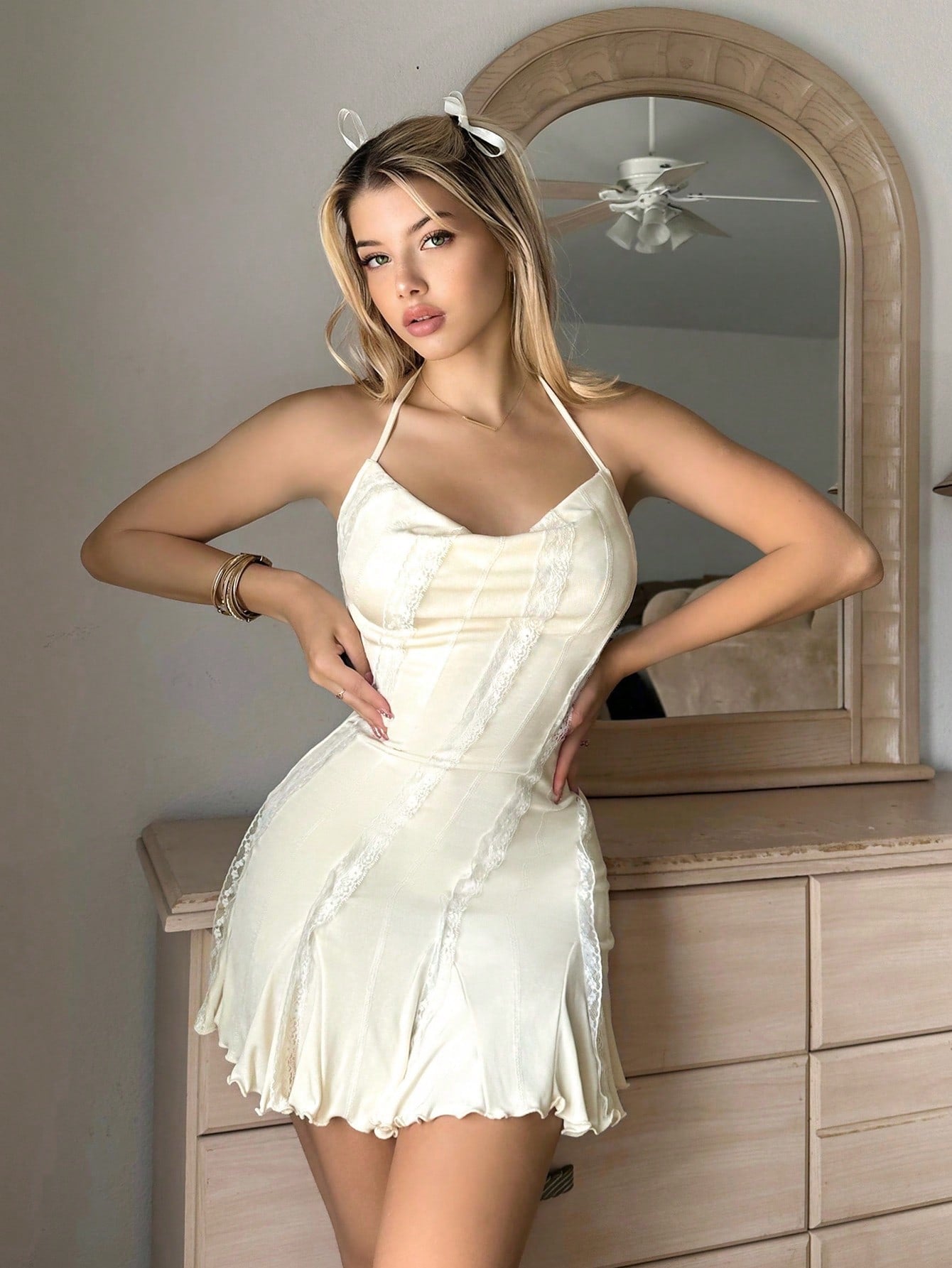 Elegant & Stylish Summer Essential with Solid Lace Trim Halter Dress
