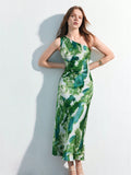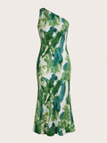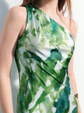 Elegant Summer Graduation Dress: Fashionable Oblique Shoulder Design in Vibrant Green