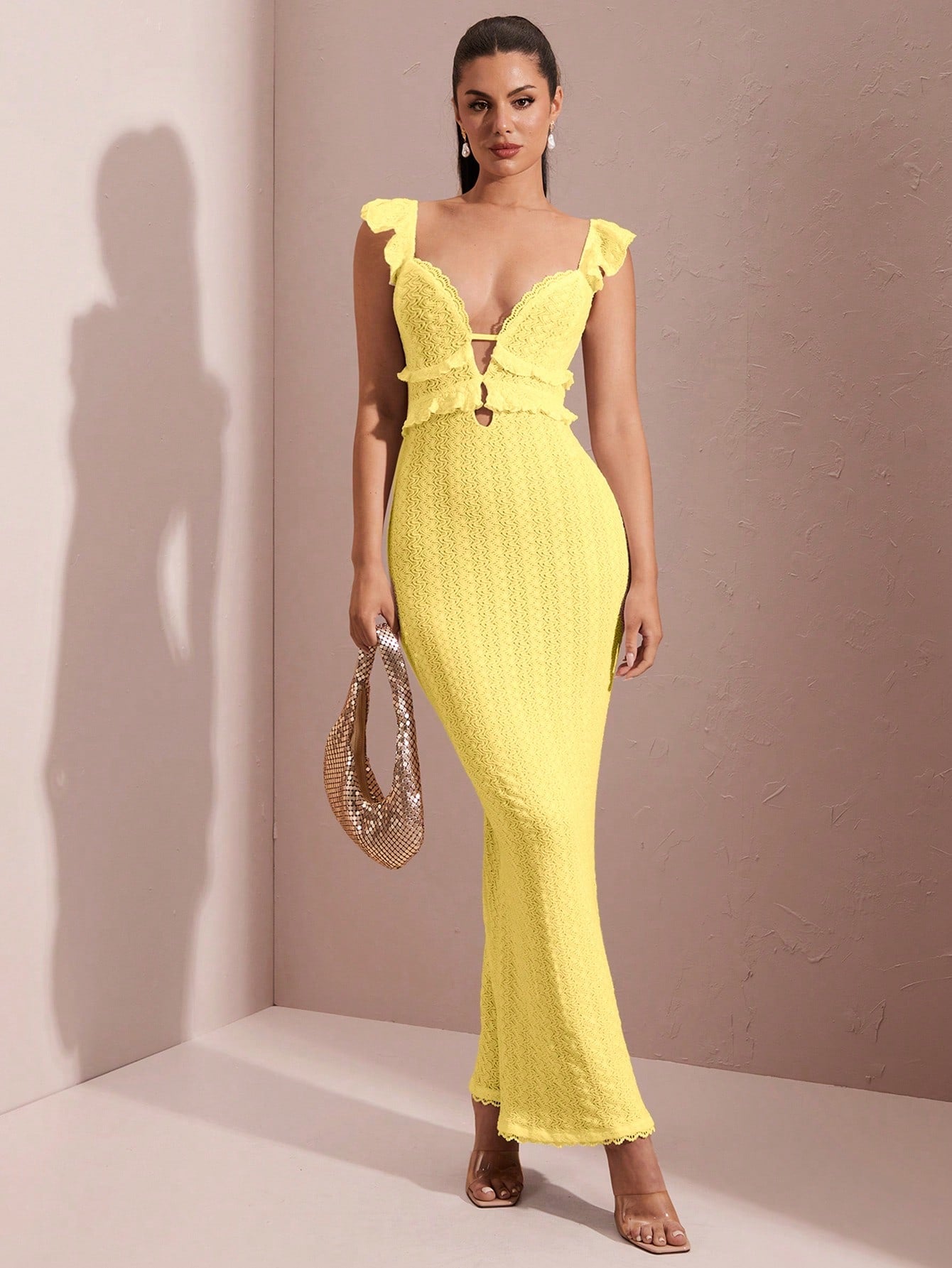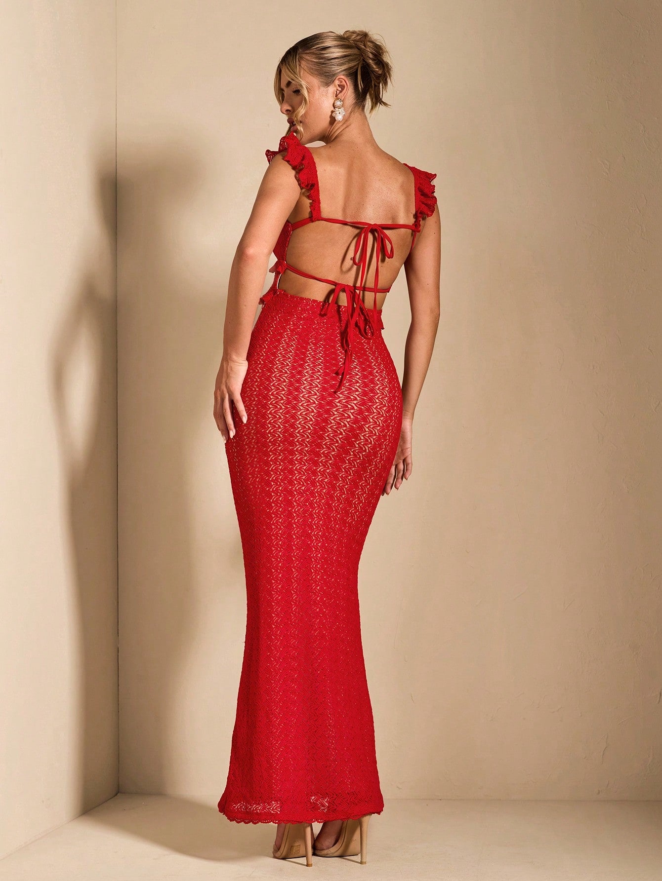 Details : Backless, Ruffle, Zipper