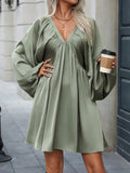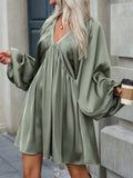 Elegant V-Neck Satin Dress with Batwing Sleeves – Perfect for Spring and Autumn