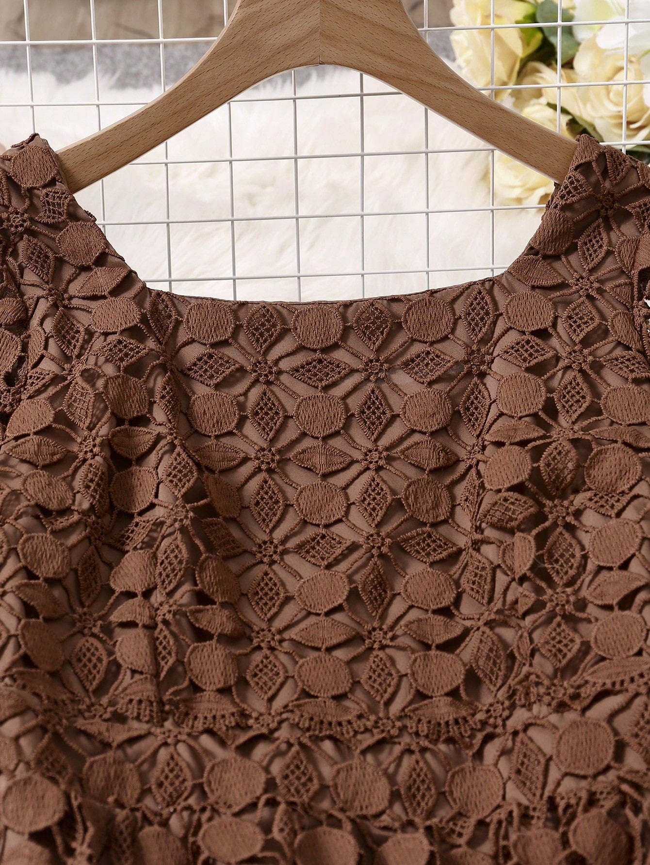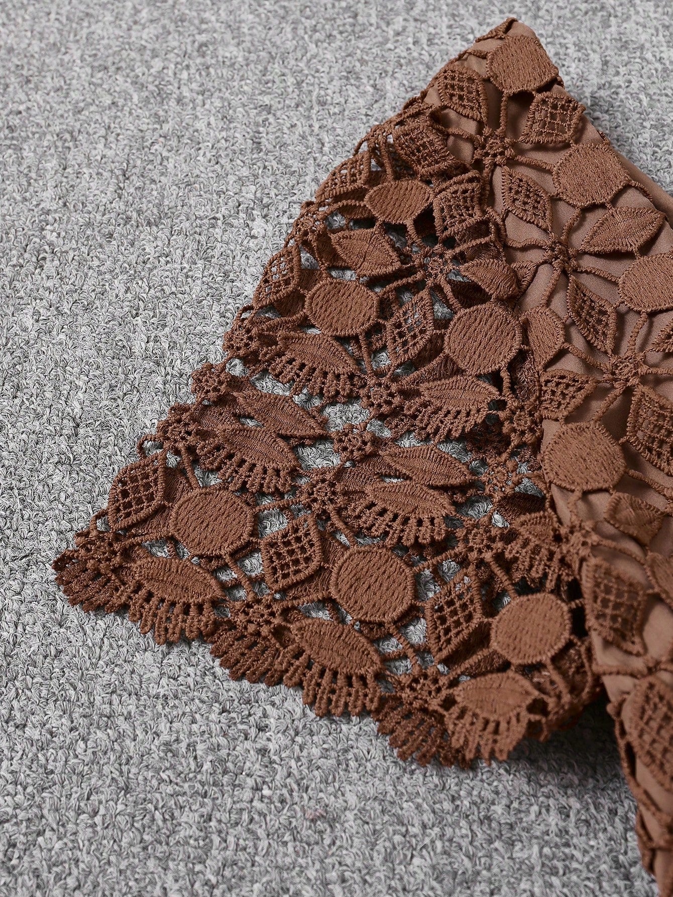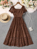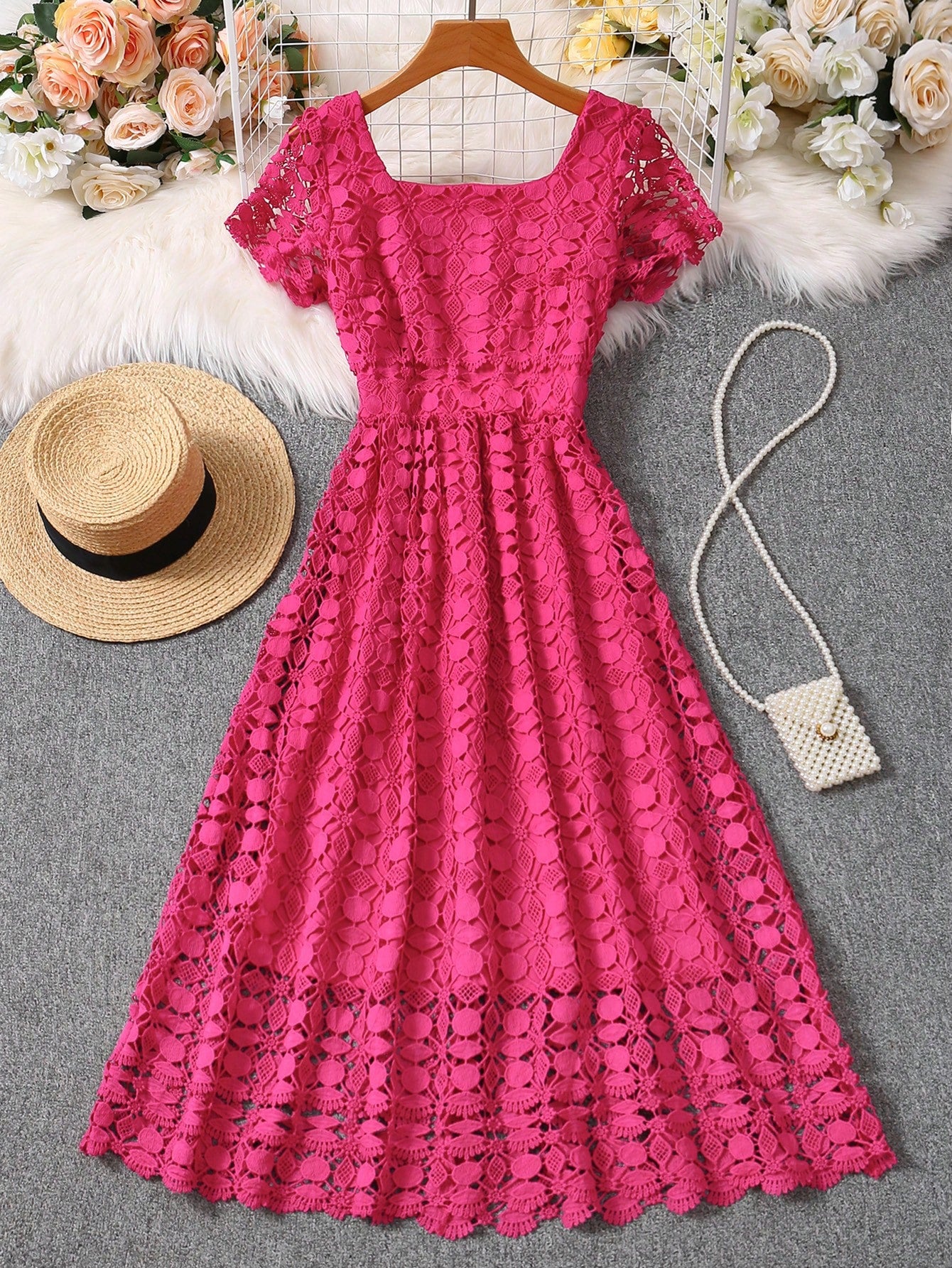 Elegant Women's Solid Color Maxi Dress with Square Neck and Mesh Panel