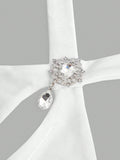 Elegant Y2K-Inspired White Dress with Furry Patchwork and Decorative Details