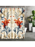Elegantly Designed Baroque Style Leaf Printed Shower Curtain for Stylish Bathroom Decor